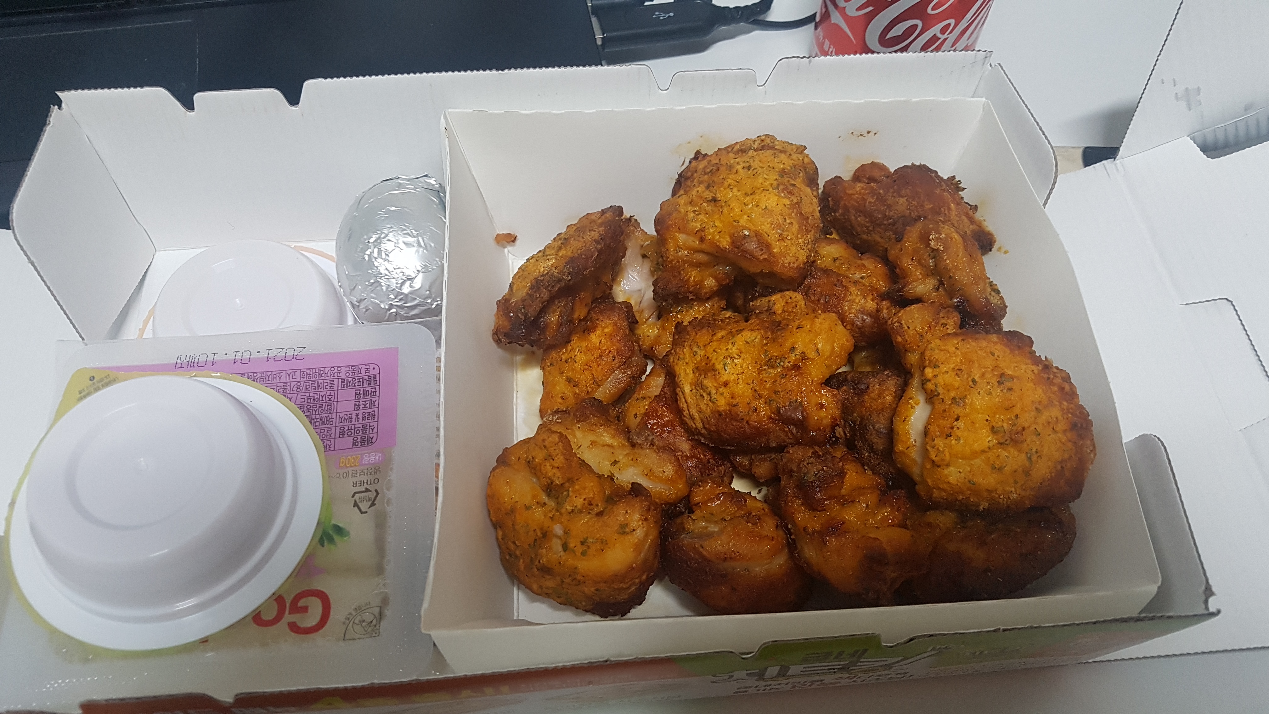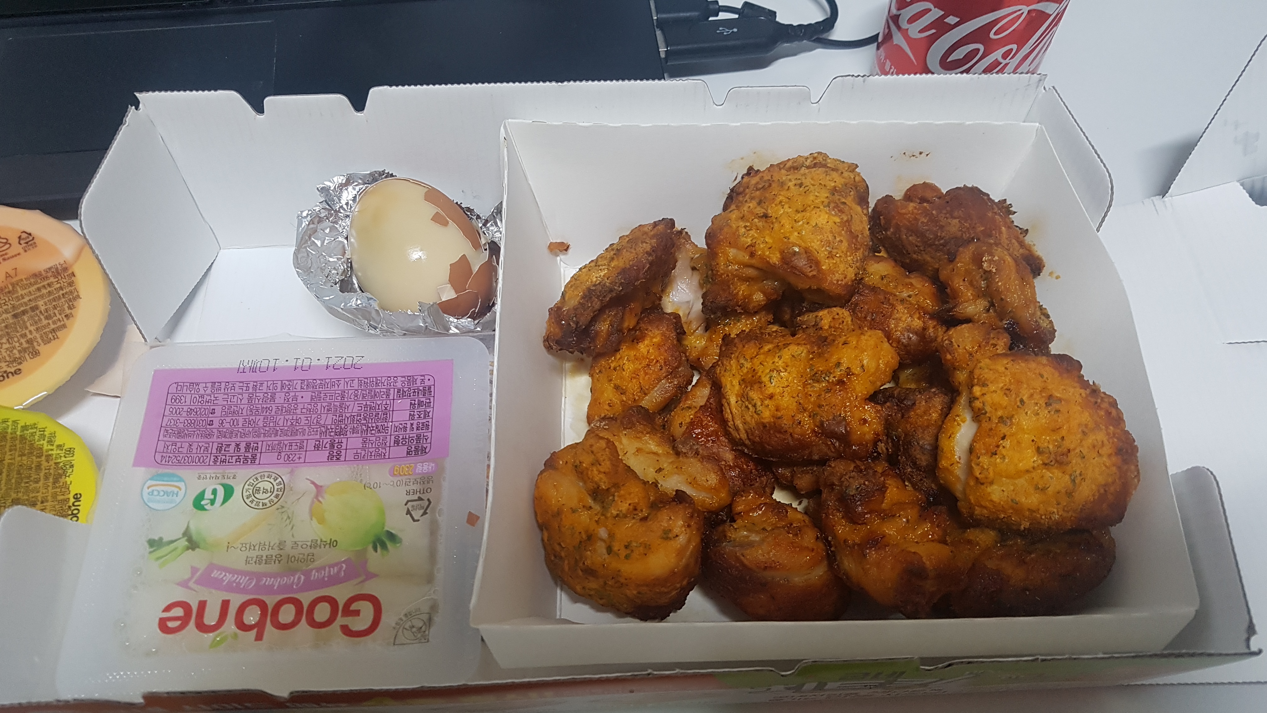 굽네 치킨을 처음 먹어봤는데요.(사실 교촌 빠순이) 구운 계란을 줘서 신선했어요. 담백한 치킨에 퍽퍽한 구운 계란, 뭔가 촉촉한게 필요한 시점입니다. 치킨무 드링킹하시면 ㅋㅋㅋㅋㅋㅋㅋㅋㅋ살쪄요.