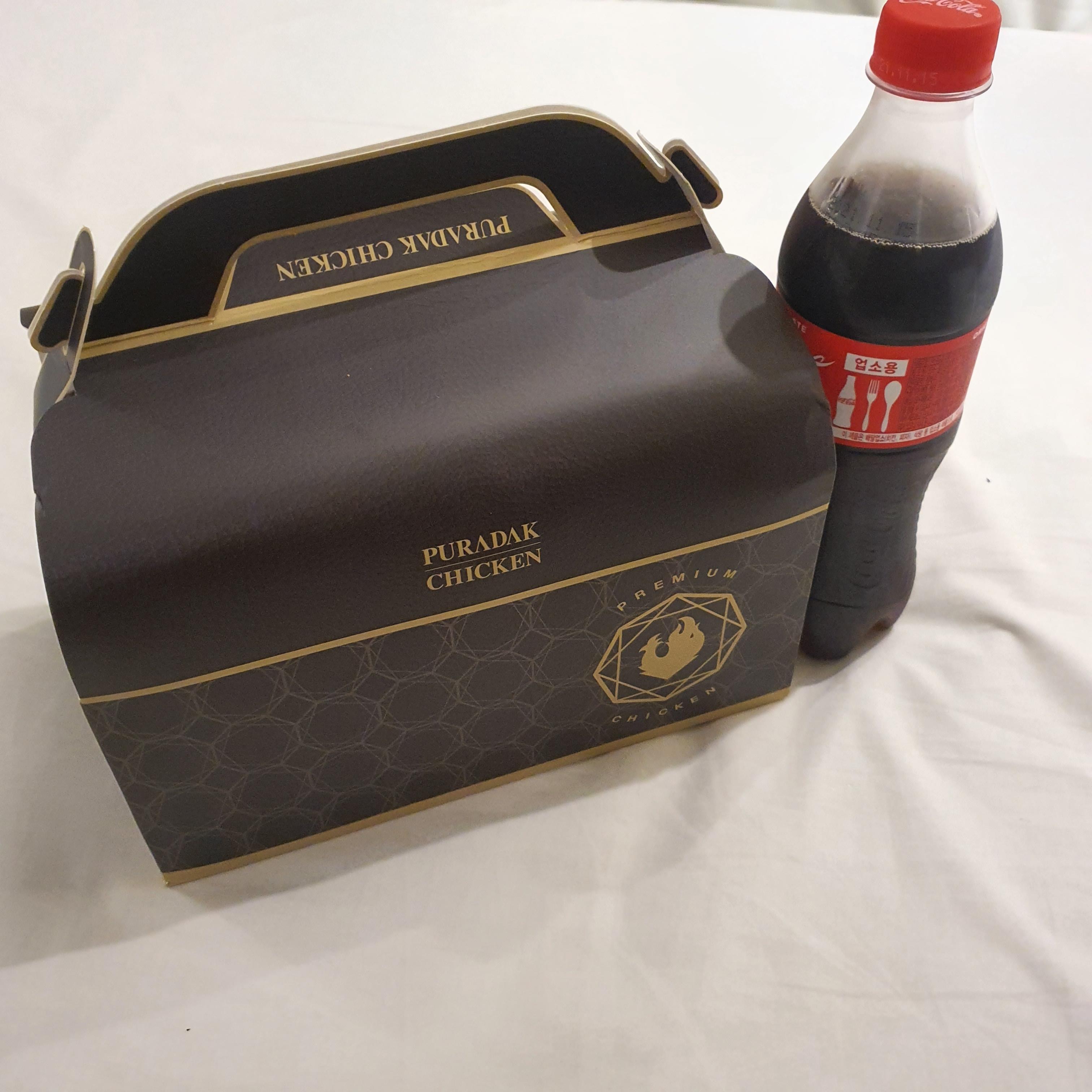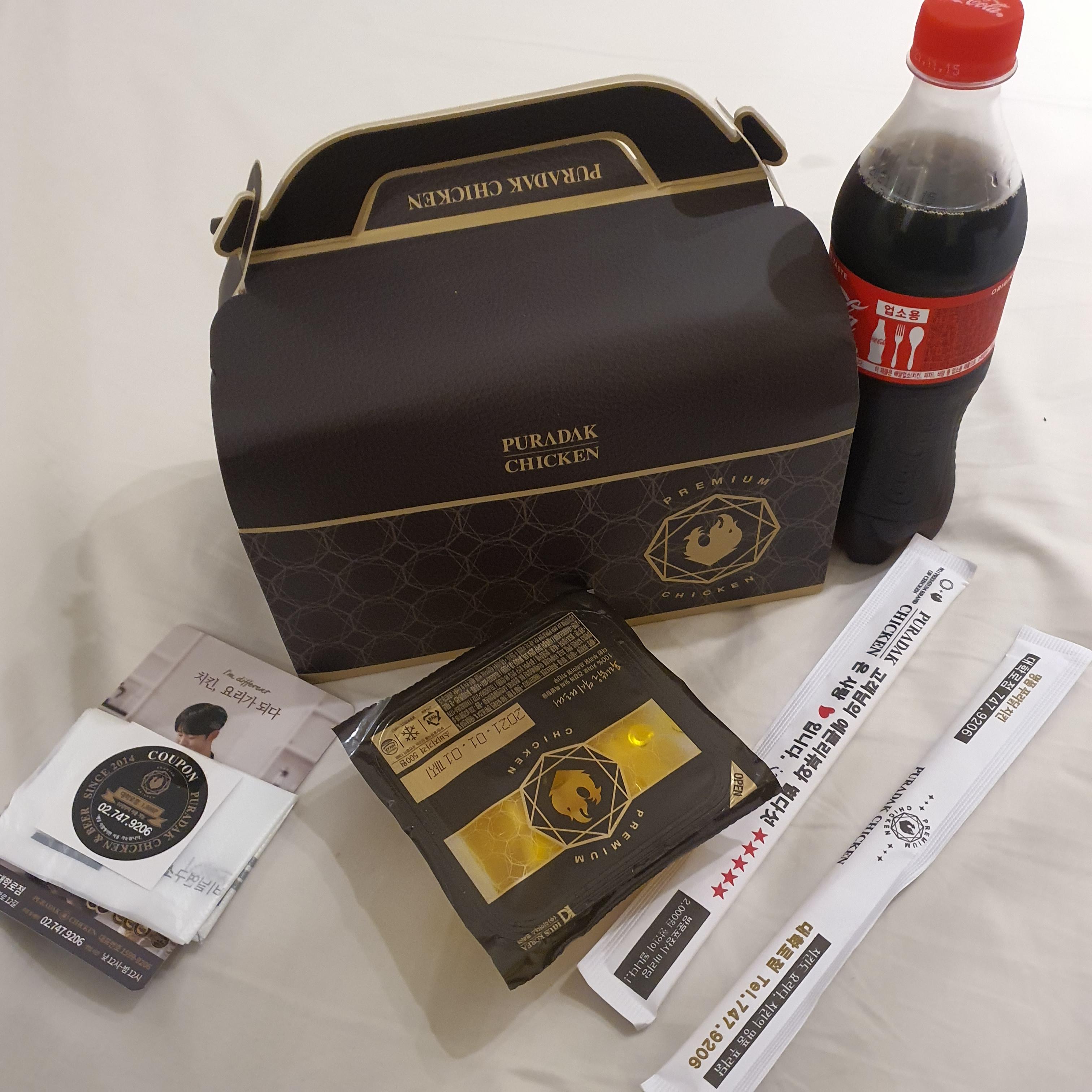 푸라닥의 구성이에요. 고급스러움을 연출한 차별화된 치킨이에요. 기꺼이 재밌게 즐기면서 먹었어요. 푸라닥 치킨은 또 먹어봐야지 라는 생각이 들더라구요. 하지만 그 느끼함에 아직까진 또 먹어보진 않았어요. 언제 먹을 일 있으면 먹지뭐..