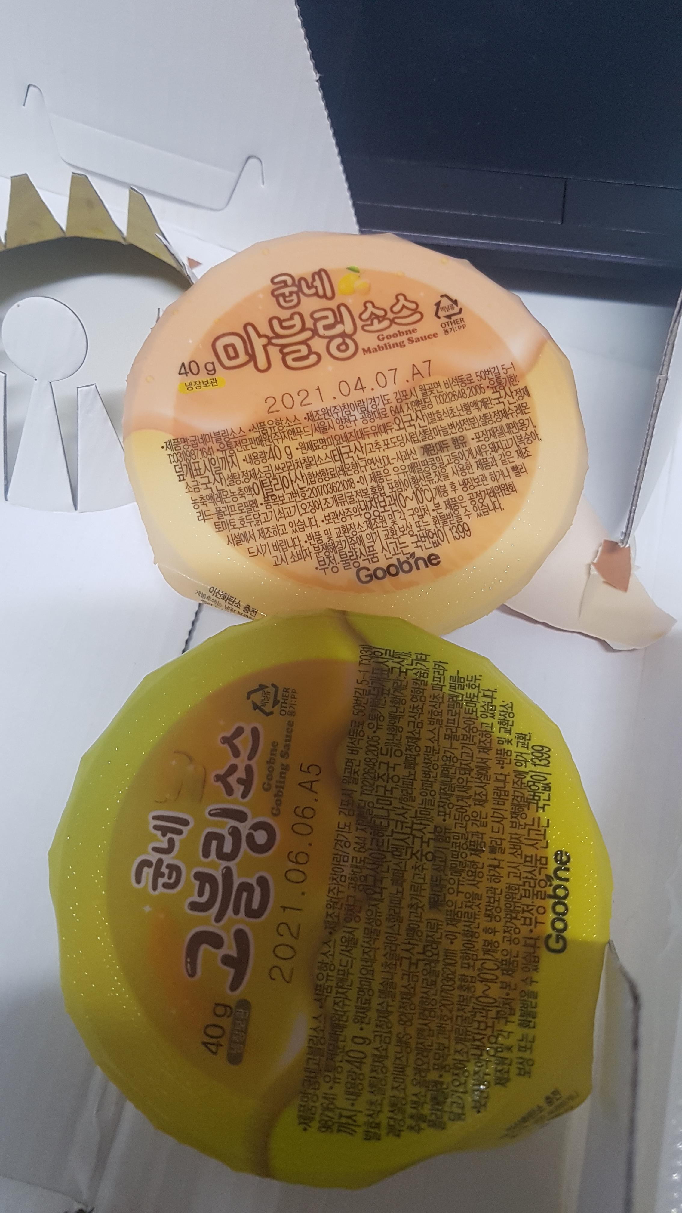 다소 담백한 굽네 치킨의 촉촉함을 달래줄, 2가지 소스에요.고블링소스 그리고 마블링 소스 ㅋㅋㅋㅋ이름 귀엽네요.