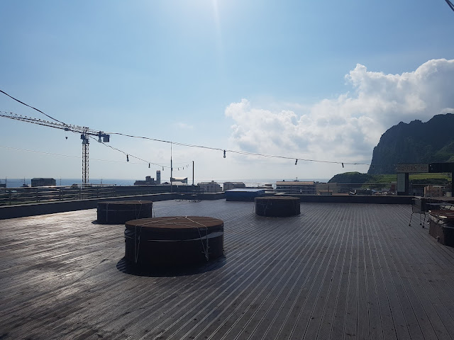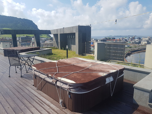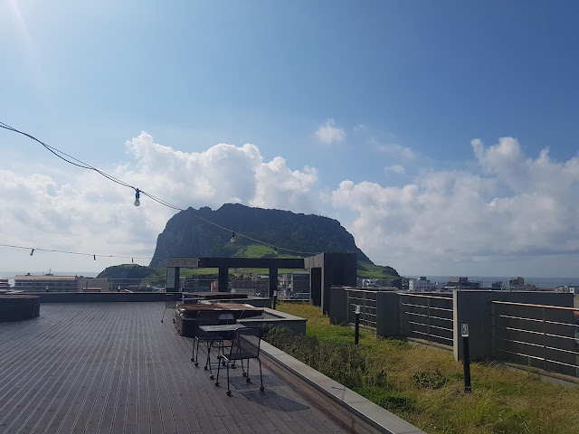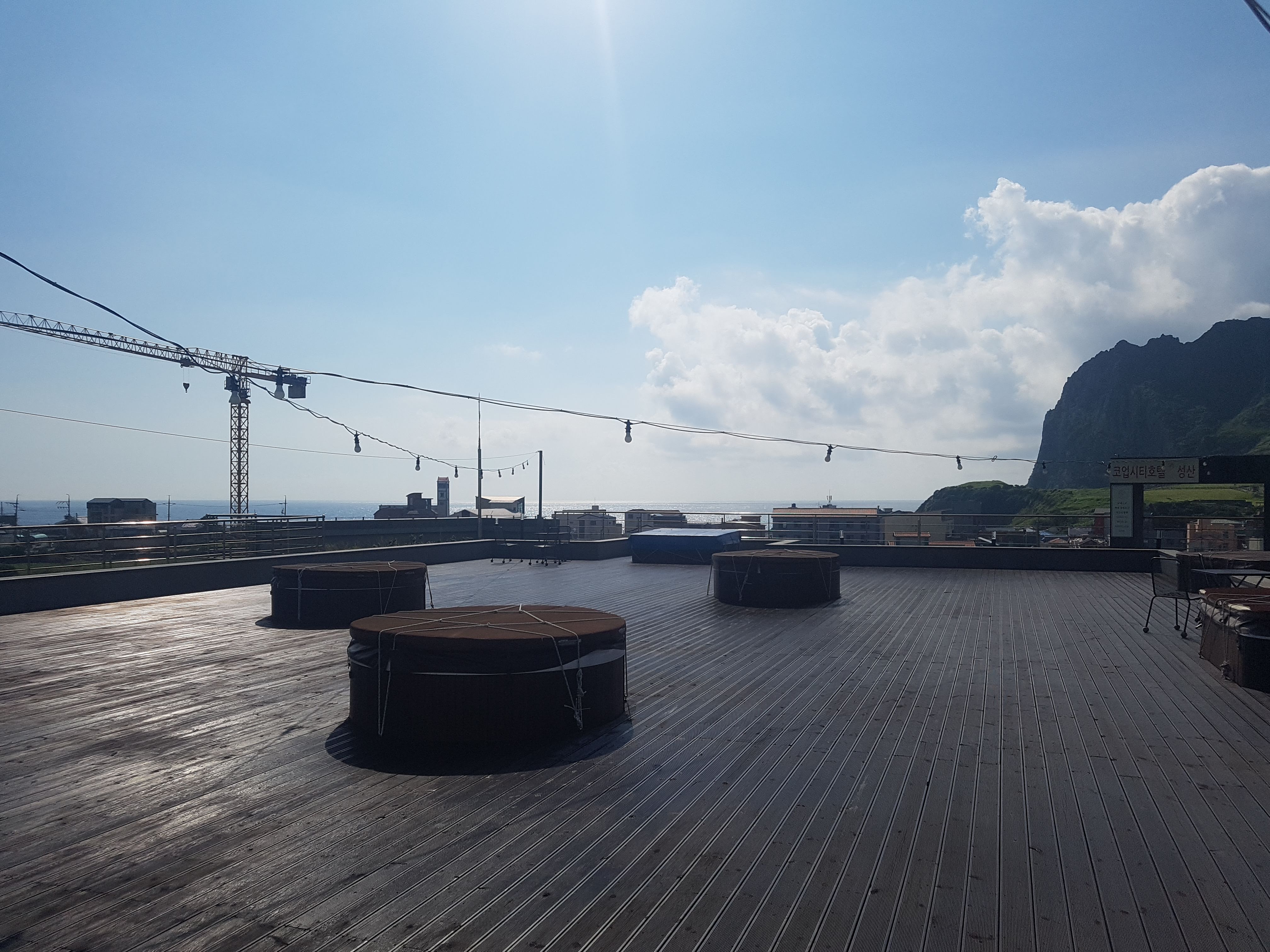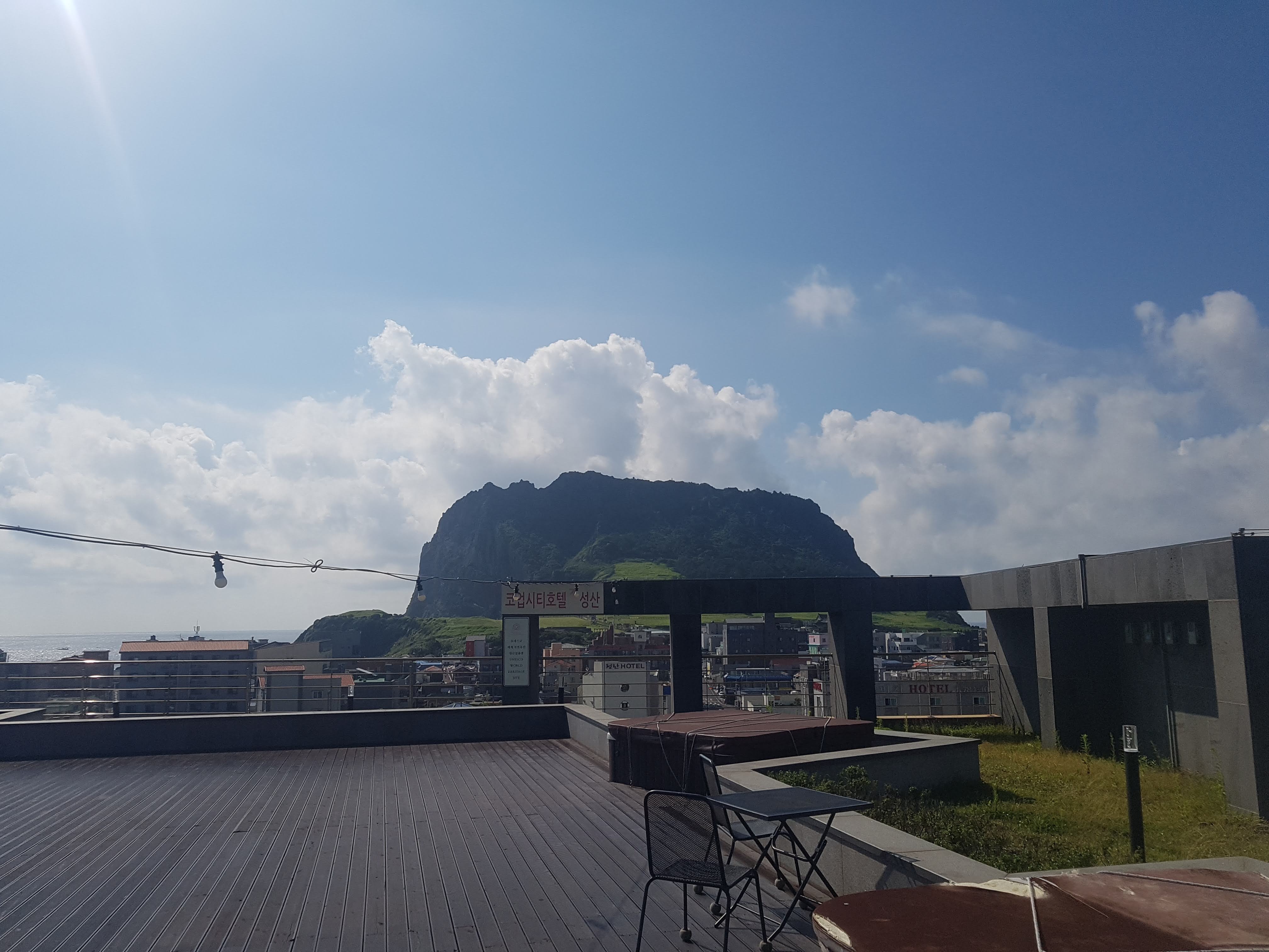 옥상으로 나오면 성산읍의 360도 전망을 감상할 수 있습니다. 호텔에서 감상하는 "성산일출봉"은 최고였어요.