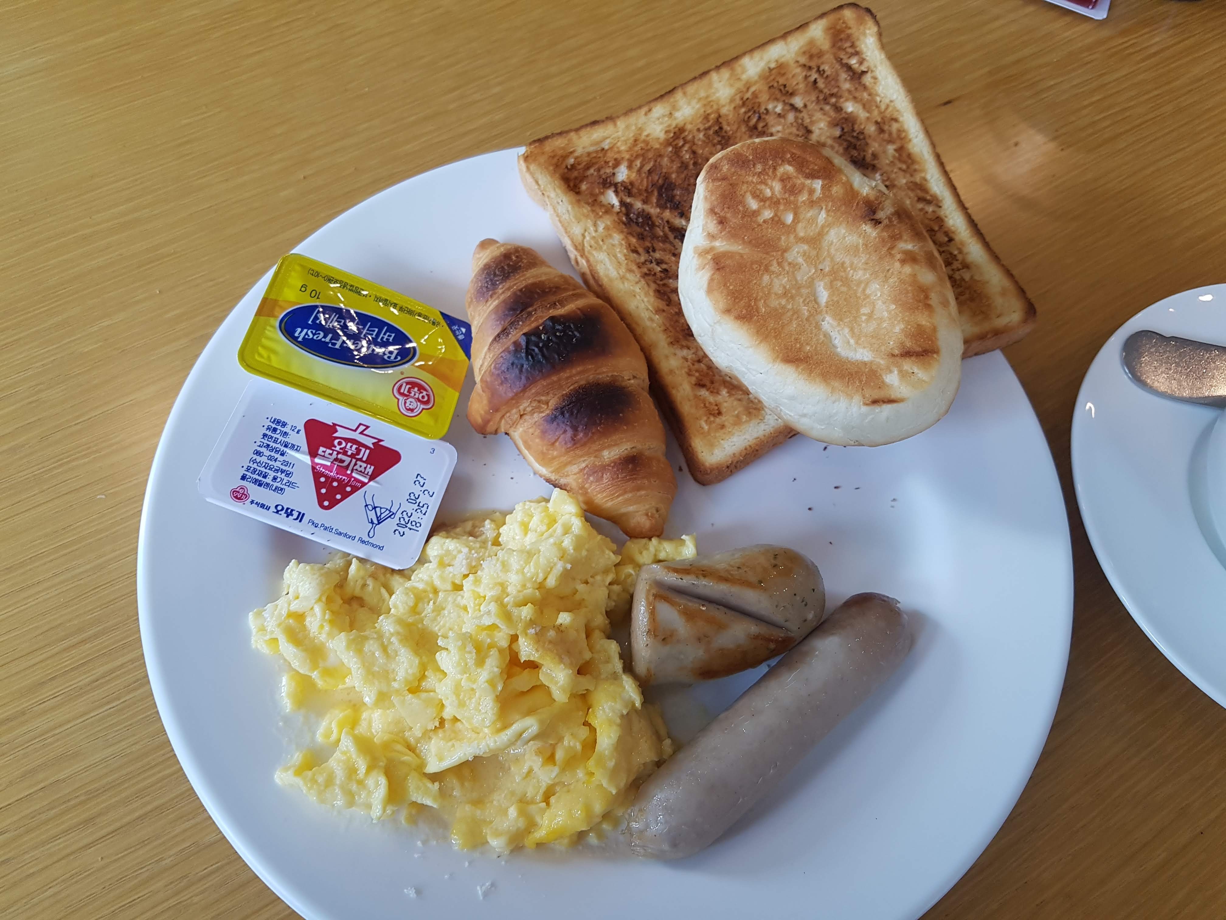오늘 조식의 주인공, "김치 콩나물 국"입니다. 지방 도시의 호텔을 이용할 때마다 느끼는 건 한식의 강자가 바로 이곳에 있다는 것이지요. 한식은 지방에 있는 호텔의 셰프들이 맛있게 잘 만들어요.