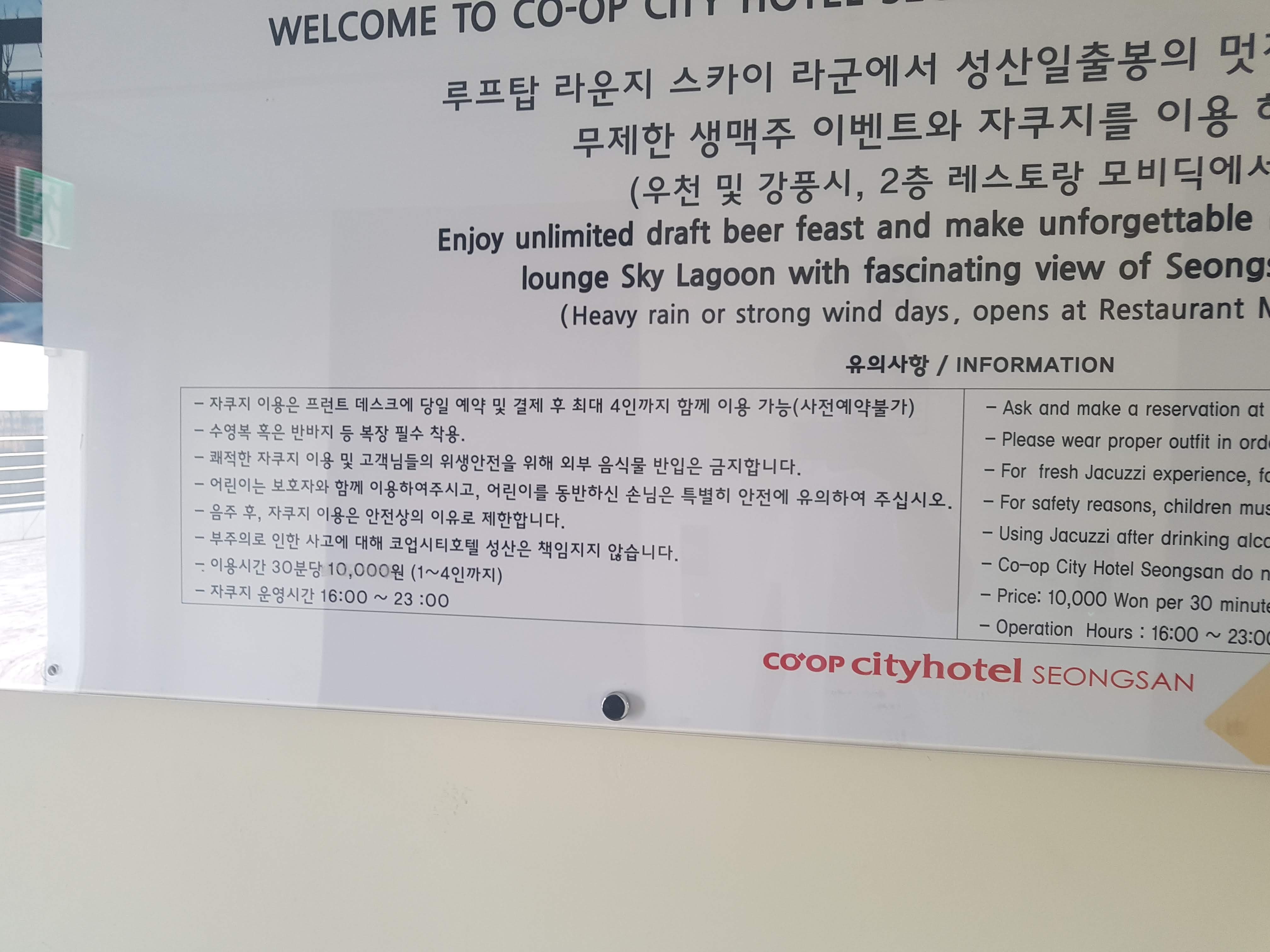 자쿠지 사용 안내: 이용요금은 30분 당 10000원