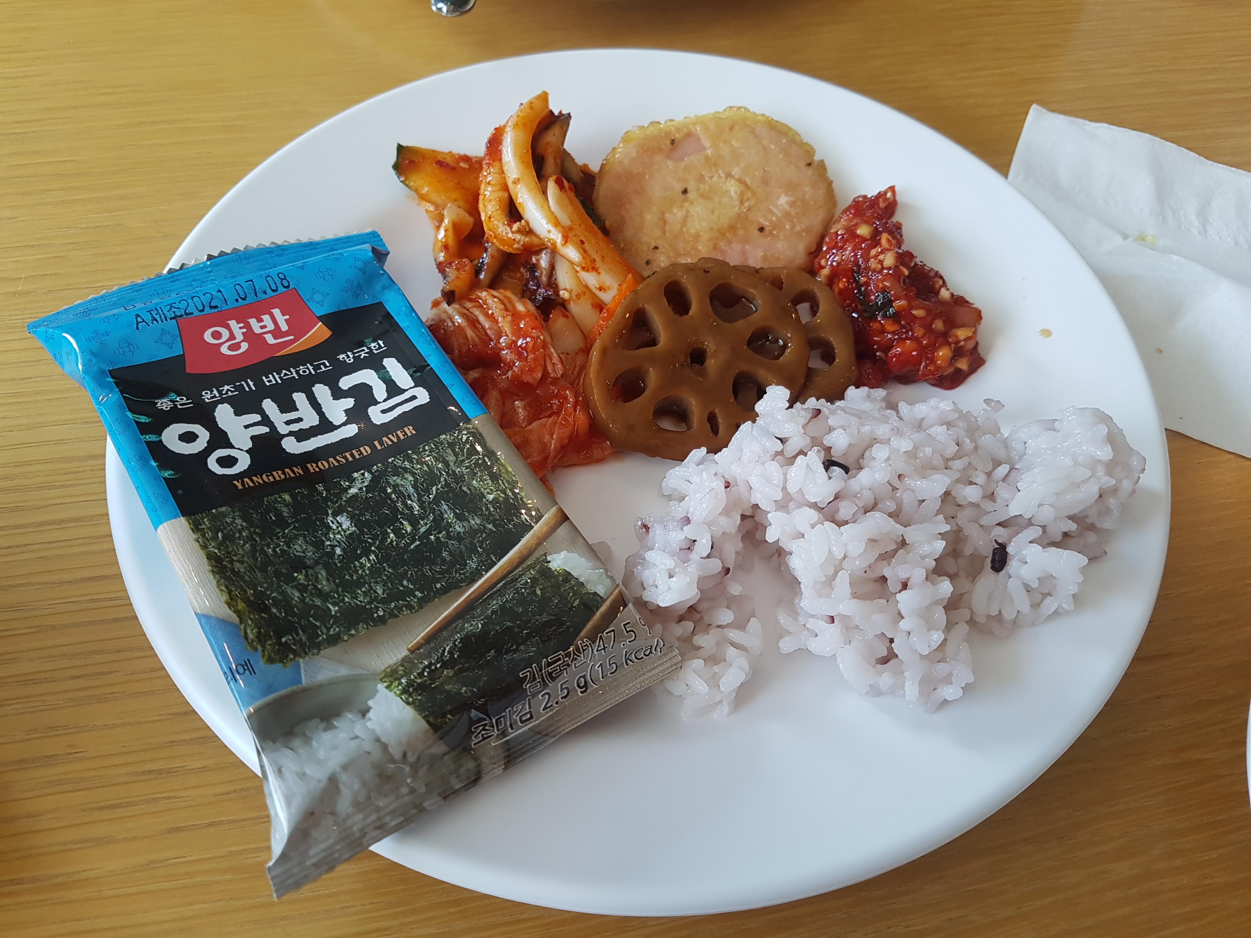 한식 메뉴를 담아왔습니다. 한식 메뉴는 맛있었어요. 반찬가게에서 맛볼 수 있는 흔한 맛입니다.