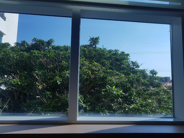 창 밖에는 이렇게 제주의 청취가 가득한 나무를 바라볼 수 있었어요. 코업시티 성산의 조식 메뉴는 전체적으로 깔끔한 것이 인상적이었어요. 맛은 조금 맛있었어요.