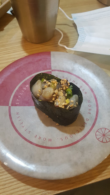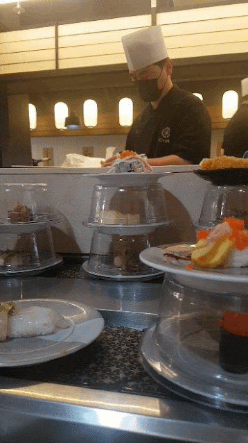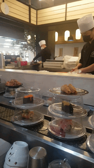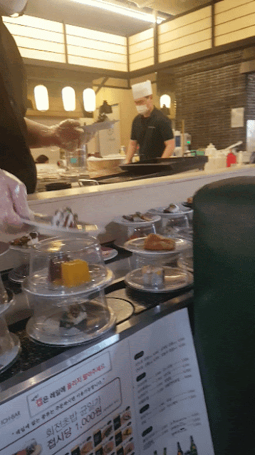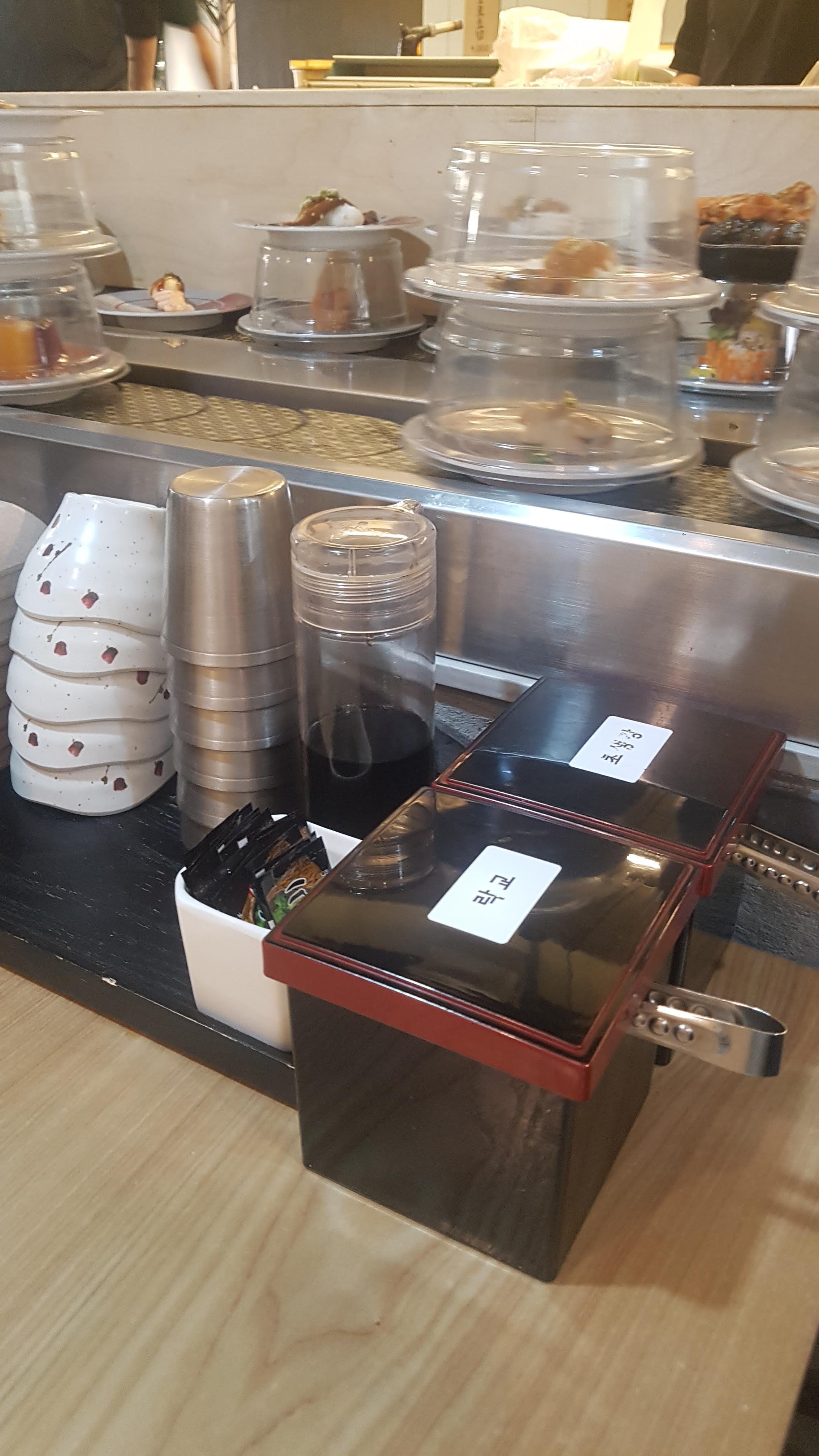 도쿄이치바의 전결입니다. 회전초밥집이죠?? 접시 위에 뚜껑을 다 씌워주셔서 한결 더 위생적으로 밑음이 갔어요. 누가 자칫 재채기라도 하면....