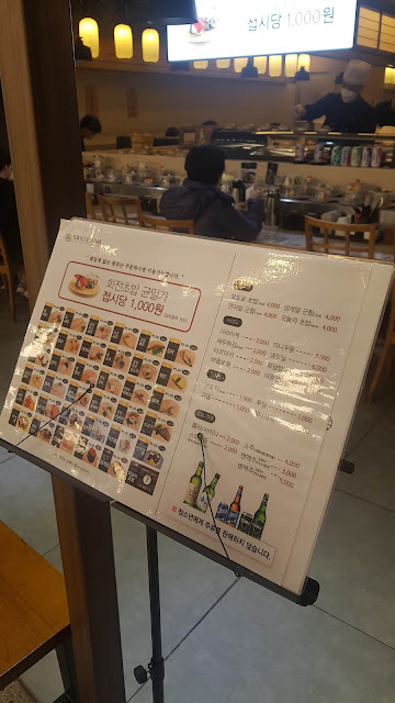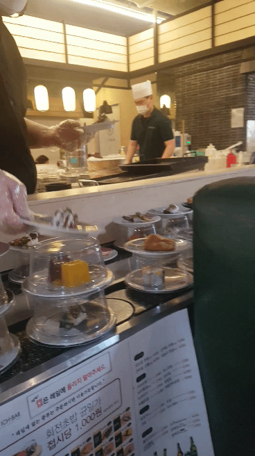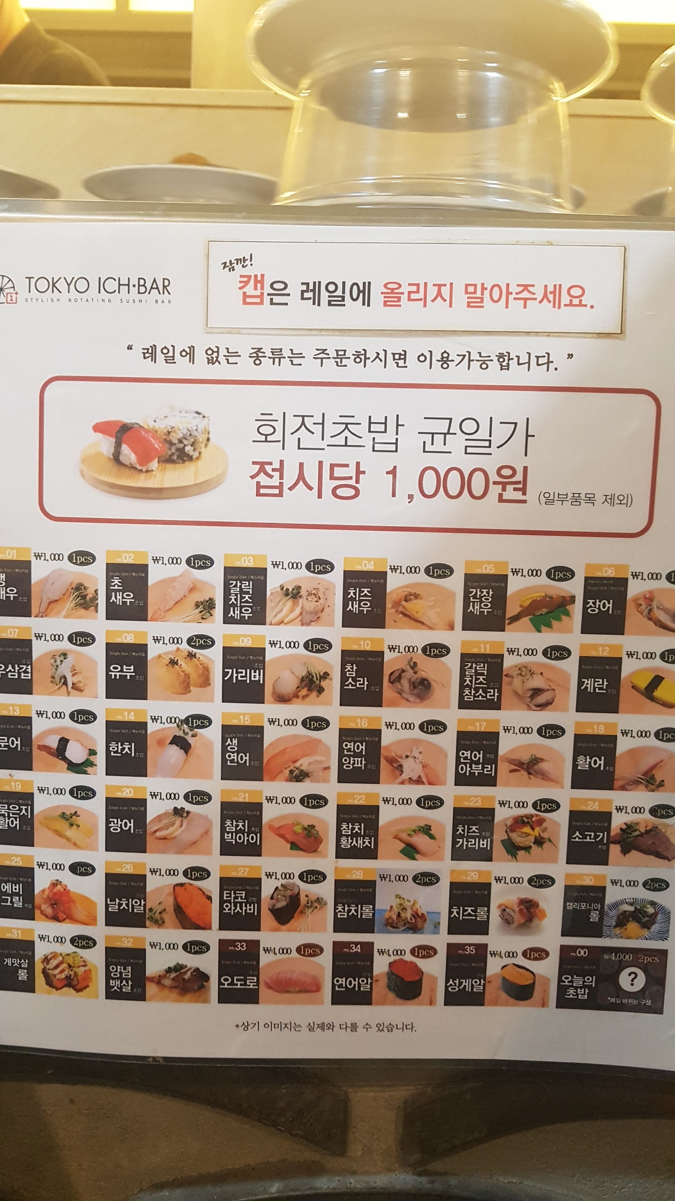 안녕하세요. 이케아 고양점에서 점심했네요. 이케아 아래 롯데 아울렛에 있는 도쿄이치바 회전초밥 전문점에 갔습니다. 가격이 접시당 1000원!!! 정말 저렴하죠. 단 한접시에 한피스만 초밥이 놓인다는 점! 그래도 배불리먹었는데 3명이사 43000원 정도 밖에 안나왔어요.
