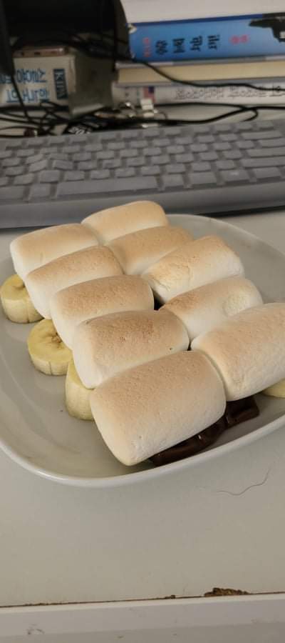 스모어 만들어 봤어요. 마쉬멜로우 초콜렛 바나나 에어프라이기 150도에서 10분 본문