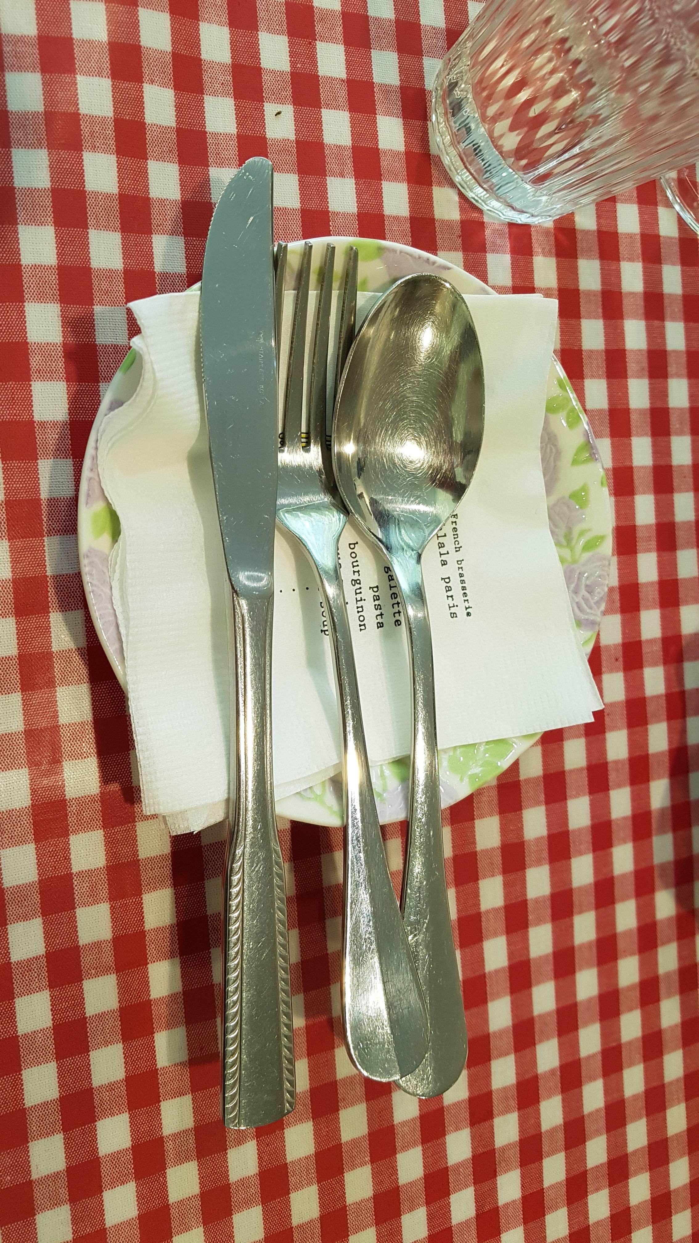 식기 세팅이에요. 간단해요. 집에서 먹는 프랑스식 가정식이니까요.