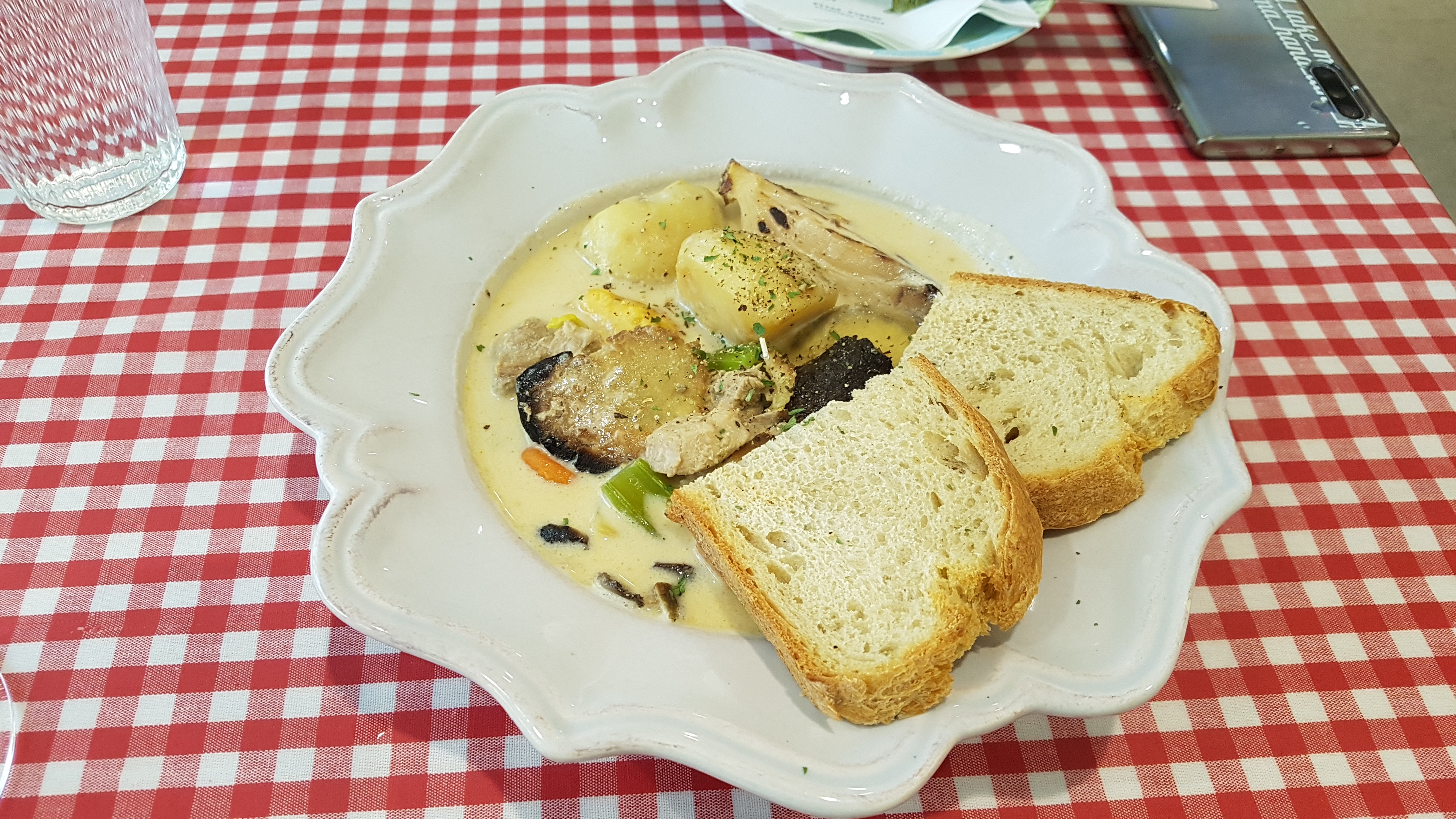 크리미 포크 스튜는 맛있어요. 크림과 야채 고기의 조화는 말을 안해도 맛있겠지요.샐러리가 들어가서 느끼함을 잡아줘요.