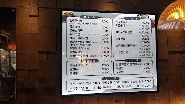 메뉴입니다. 순대국부터, 소곱창 전골까지.. 저는 순대곱창철판볶음을 먹으러 왔어요. 소짜리가 2인분인데, 작을줄알고 대짜 시켜서 남겼어요.. 3~4인분이래요.