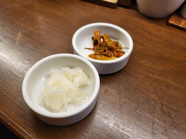 양파 절임과 고추 짱아찌를 같이 내주십니다.