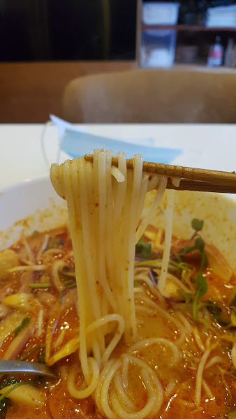 먹는 도중의 모습.. 좀 그렇죠. 들어간 재료를 다 보여드리기 위해, 염치를 버렸네요. 면은 라이스 누들과 쫄면으로 선택하실 수 있어요. 처음에 현지인 분 말을 못알아 들어서, 쫄면? 이랬더니 쫄면으로 해주시더라구요. 근데 쫄면에 제일 맛있어어요. 따뜻한 쫄면이 매력있더라구요.