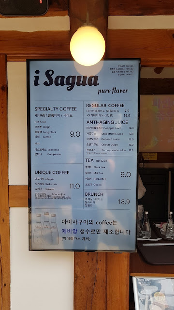 그렇게 향한 아사구아의 메뉴판. 가격을 보고 블로그를 뒤로가기 하는 분들이 많을 것 같은데요. 여긴 정말 가격이 셉니다. 그렇지만 저희는 레귤러 아이스 아메리카노 2인을 시켰어요. 그러면 아래와 같이 나옵니다.