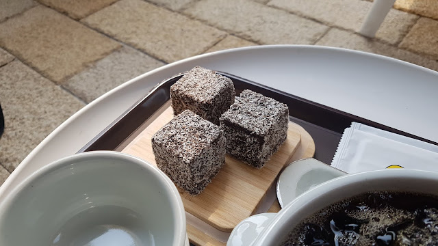 그리고 추가적으로 시킨 코코넛 초콜릿 케이크입니다. 진한 초콜릿 오예스에 코코넛을 토핑한 맛. 커피와 잘 어울립니다.