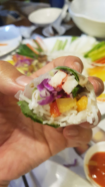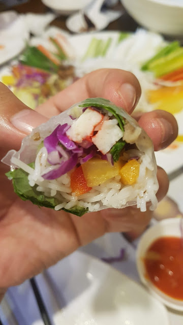 라이스 페이퍼 깔고 냠냠. 배고파서 먹었어요. 요새 월남쌈 하는 식당이 별로 없어요.