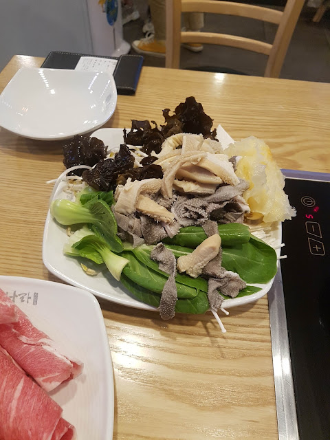 대학로 훠궈나라의 장점은 이런 내장류가 많아요. 천엽부터해서, 야채도 종류가 많아요.