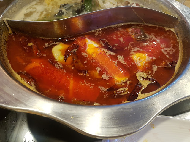 토마토 탕도 있고요. 가장 기본적인 홍탕 백탕 시켰어요. 홍탕 맵기는 딱 마라 수준이에요. 더도 덜도 아니구요.