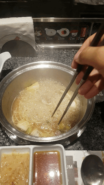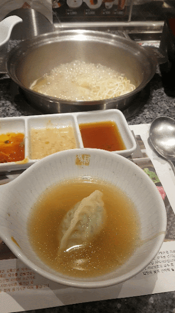 얼추 다먹으면 만두도 꺼내 먹습니다. 육수와 잘 어울립니다. 육수가 끓으면 끓일 수록 맛나요.