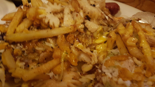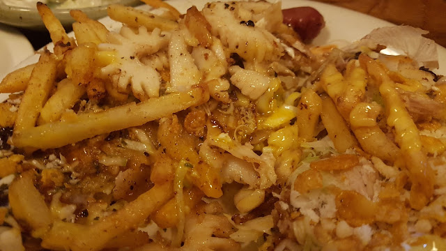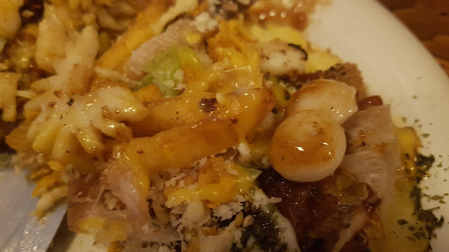오징어 토핑, 감자튀김, 튀김가루 등 토핑이 다양해요. 근데 맛있어요... 여기 늘 왔지만 늘 맛있고 느끼해~ ㅋㅋ