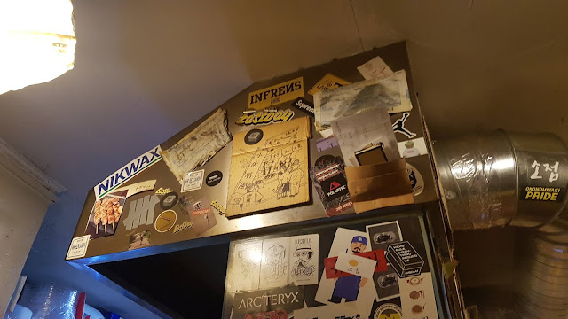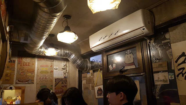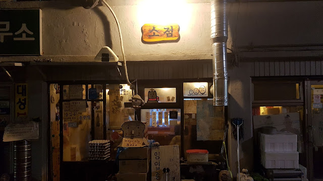 가개 내부는 오코노미야키 재료 박스로 만든 감성이에요. 일본 구멍가게 느낌의 가게입니다.