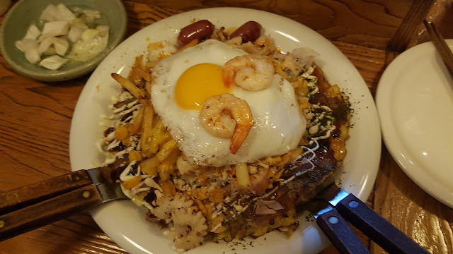 이번엔 오사카풍으로 시켰어요. 왜냐면 야키소바도 먹을 꺼니까 면이 없는 오코노미야키로.