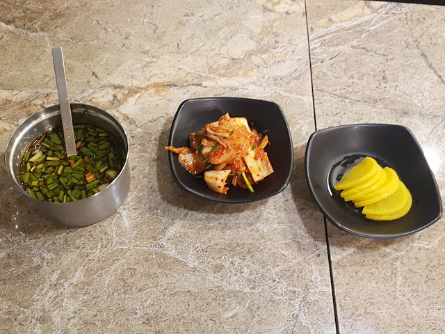 얼큰 부추전을 먹기 전에 찬거리를 좀 찍어보았어요. 이렇게 간장 소스와 김치 단무지입니다. 면과 먹기 좋고, 부추전이 살짝 느끼할 때, 단무지랑 잘 어울리더라구요.
