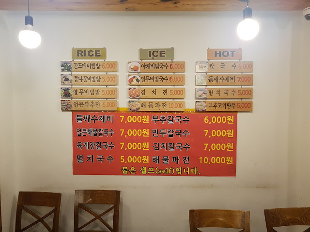 칼국수 면이 오동통하고, 가격도 저렴해서(아래 가격표 참조) 정말 푸짐했어요. 양이 많은 게 느껴지시나요.