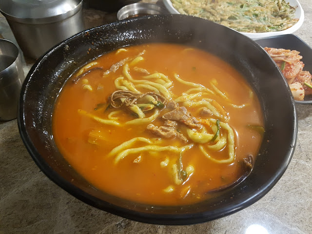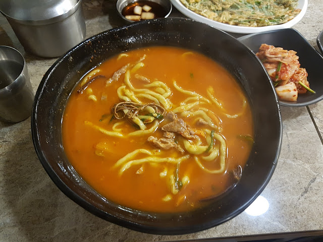식전에 삼청동에서 느끼한 디저트, 간식 류를 많이 먹어서, 속이 느글느글 했는데요. 요 육개장 칼국수로 싹 내릴려고 시켰습니다.