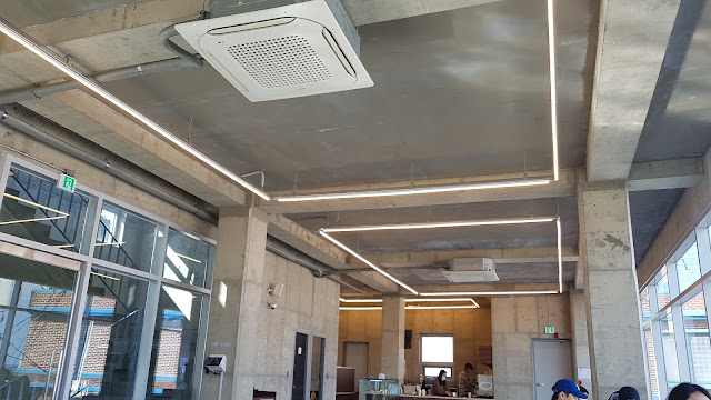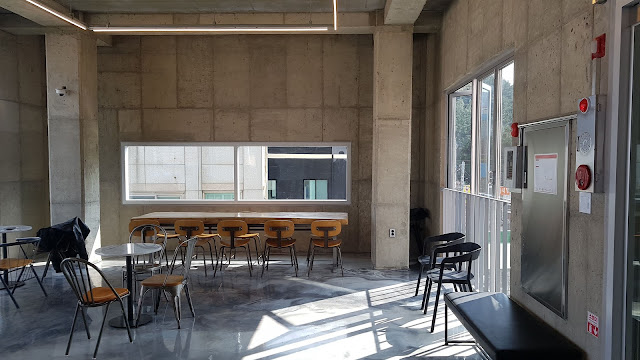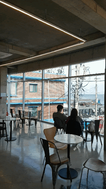 Ini adalah kafe "Proust" di hadapan stesen "Jeongdongjin". Konkrit yang terdedah menunjukkan penampilan yang mengagumkan. Ia memiliki pemandangan panorama stesen "Jeongdongjin" dan pantai Laut Timur