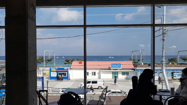 風景真的很棒。這是等待KTX的完美咖啡館。