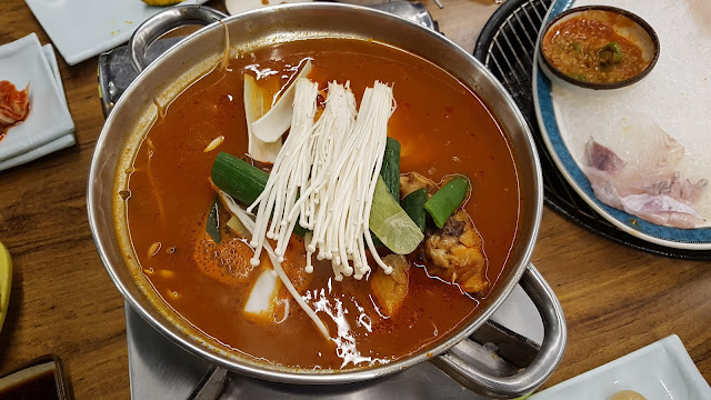 仕上げに「メウンタン」です。このレストランの「メウンタン」が本当においしい。あらかじめ長く沸かし、魚の骨で湧き出るコクがすごくます。ご飯と一緒に食べたところで、満腹状態なのに続き食べました。