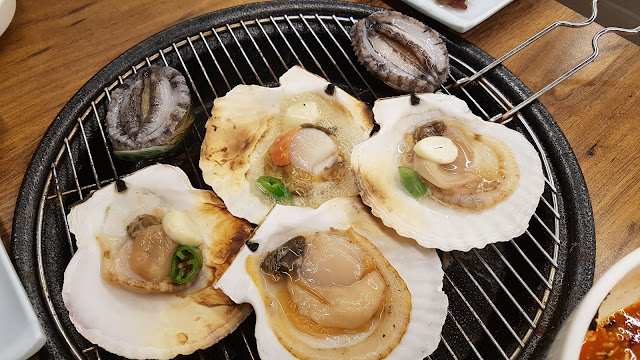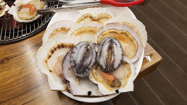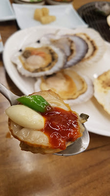 The abalone is fresh and alive. The scallop was very chewy because the temper was raised. It tastes fantastic because it is eaten with sliced garlic, red pepper and super red pepper paste! I feel like I'm at the beach.