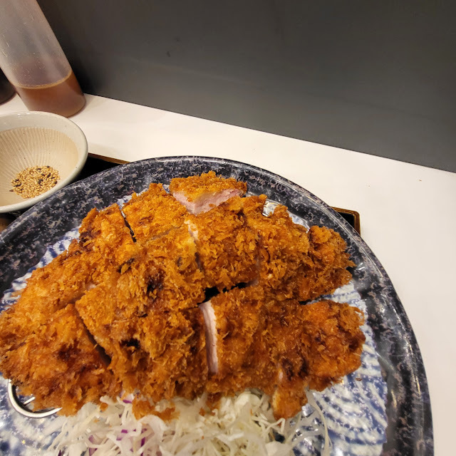 돈가스의 고기 두깨가 상당하고 튀김 옷도 식감이 있는 편입니다. 입까지는 것 감안하셔야 돼요.