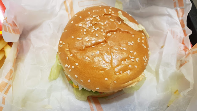 사이즈는 딱 중간 패티만큼 타 메뉴보다 커진 느낌. 그렇지만 패티 2장들어가서 가성비 갑 친구에요. 칼로리는 602Kcal입니다.
