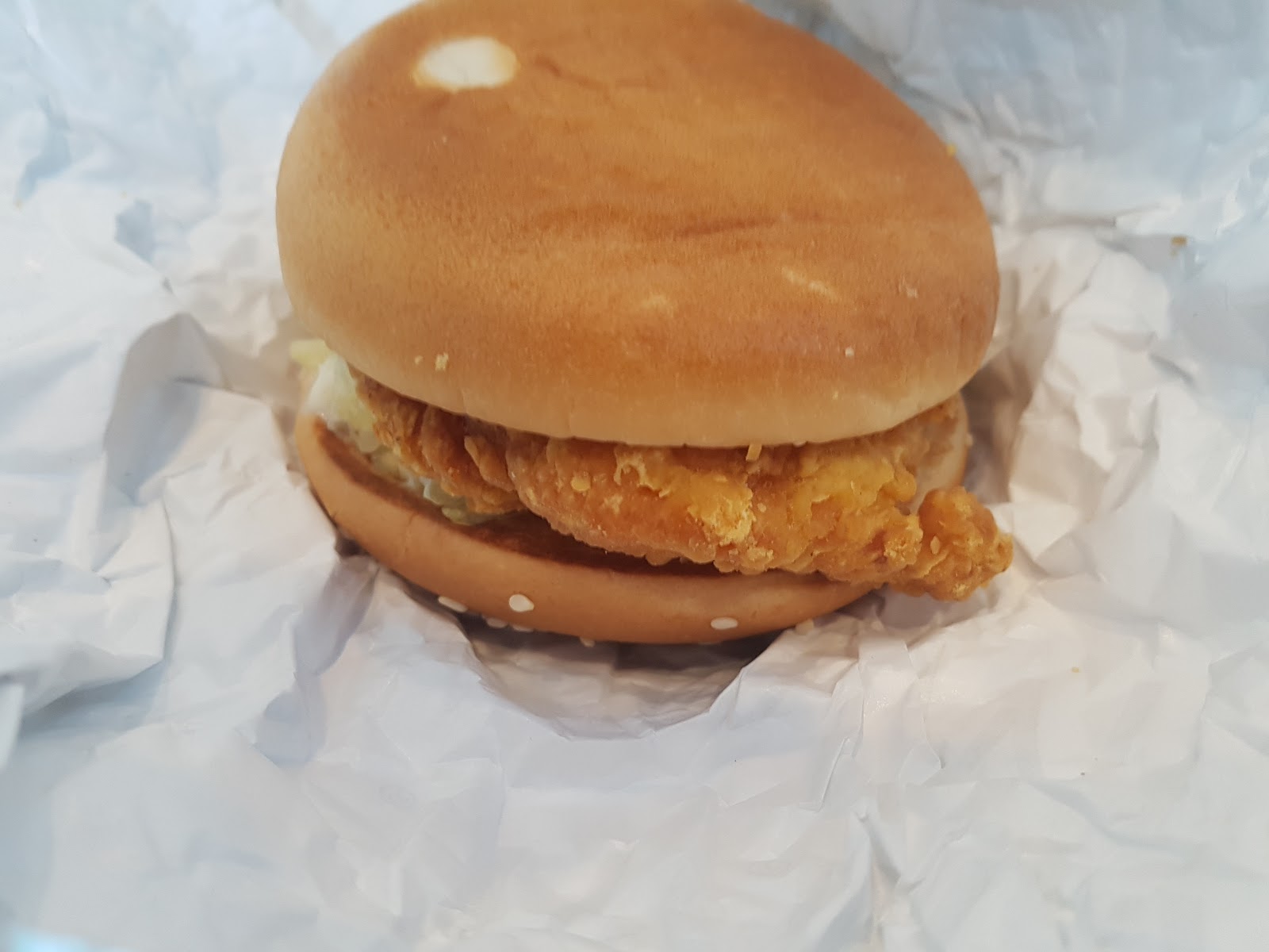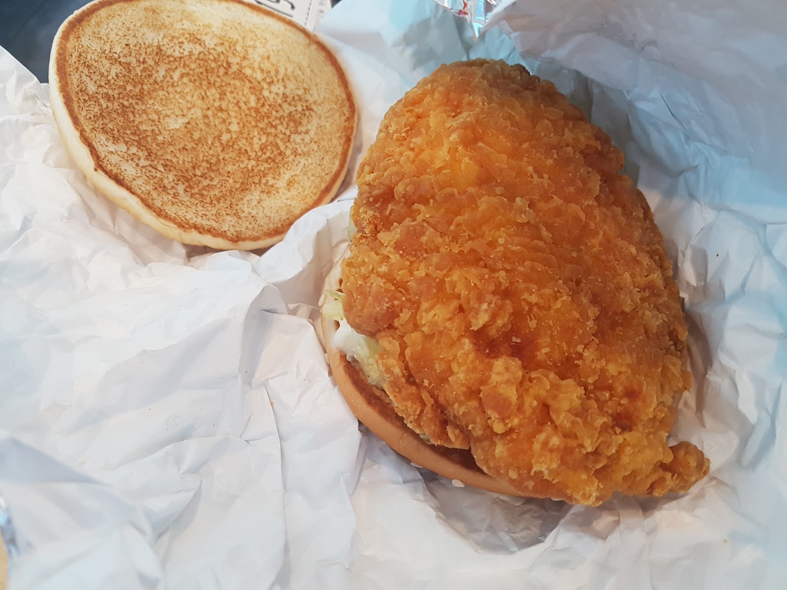 이렇게 뚜껑을 열어줍니다. 그러면 치킨 패티가 나오는데요. 꽤 크네요?