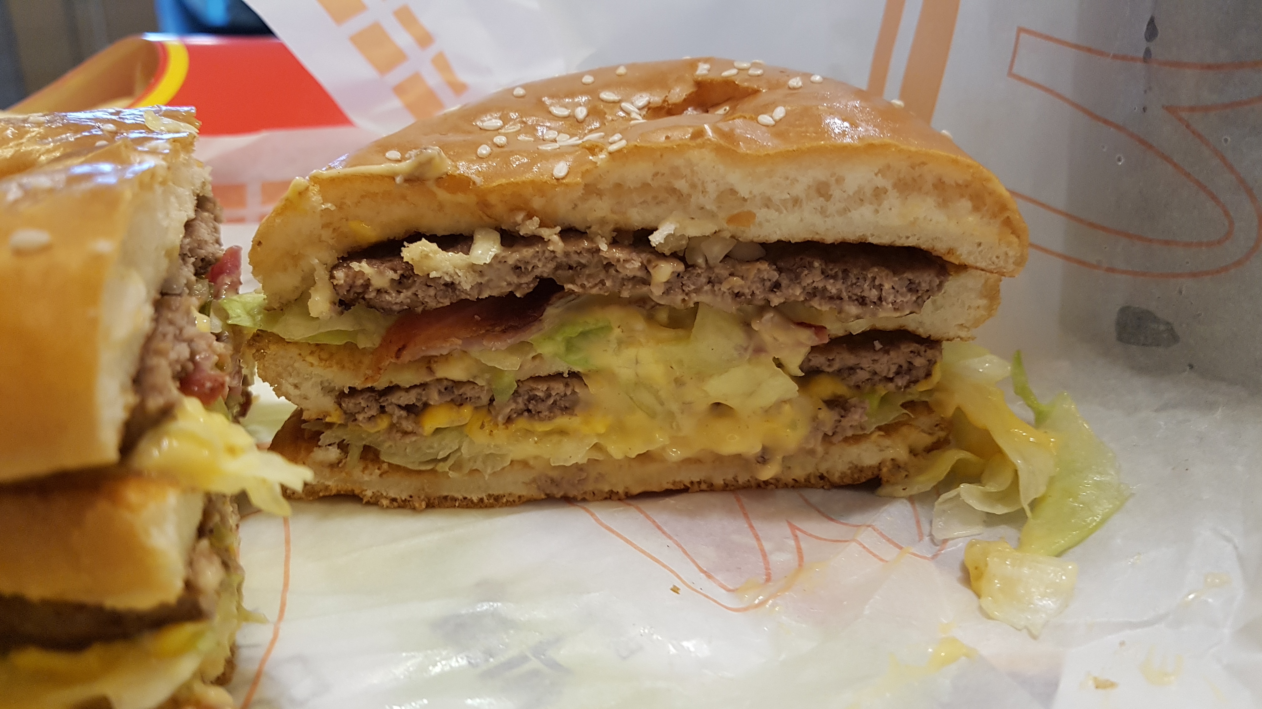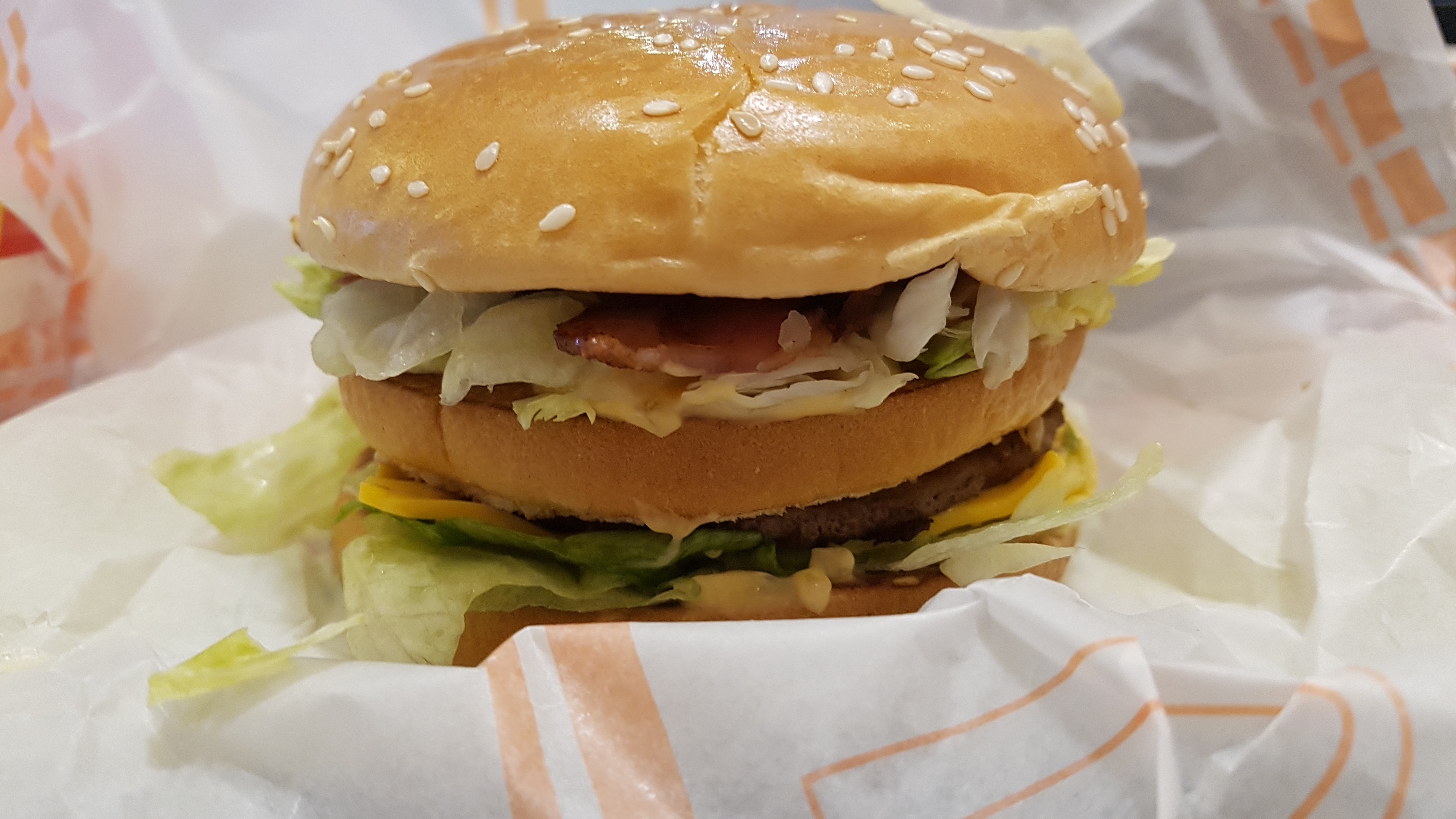 단면도, 치즈와 마요네즈가 범벅된 우리 베이컨 빅맥. 맛은 베이컨 맛이 하나도 안나요!