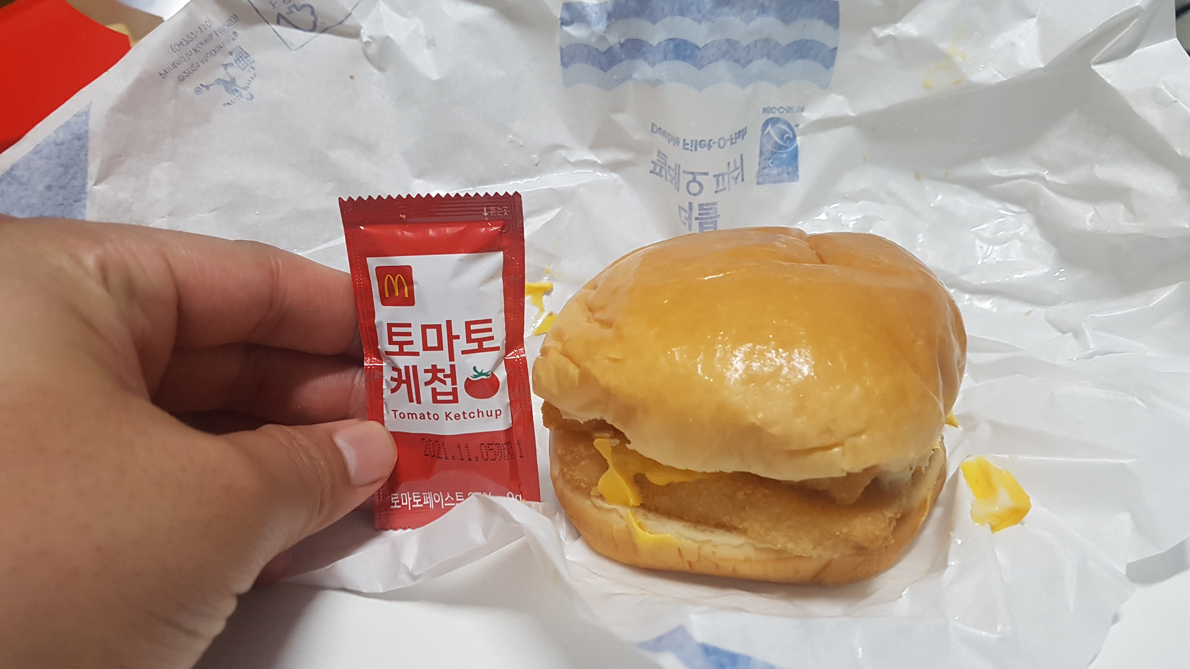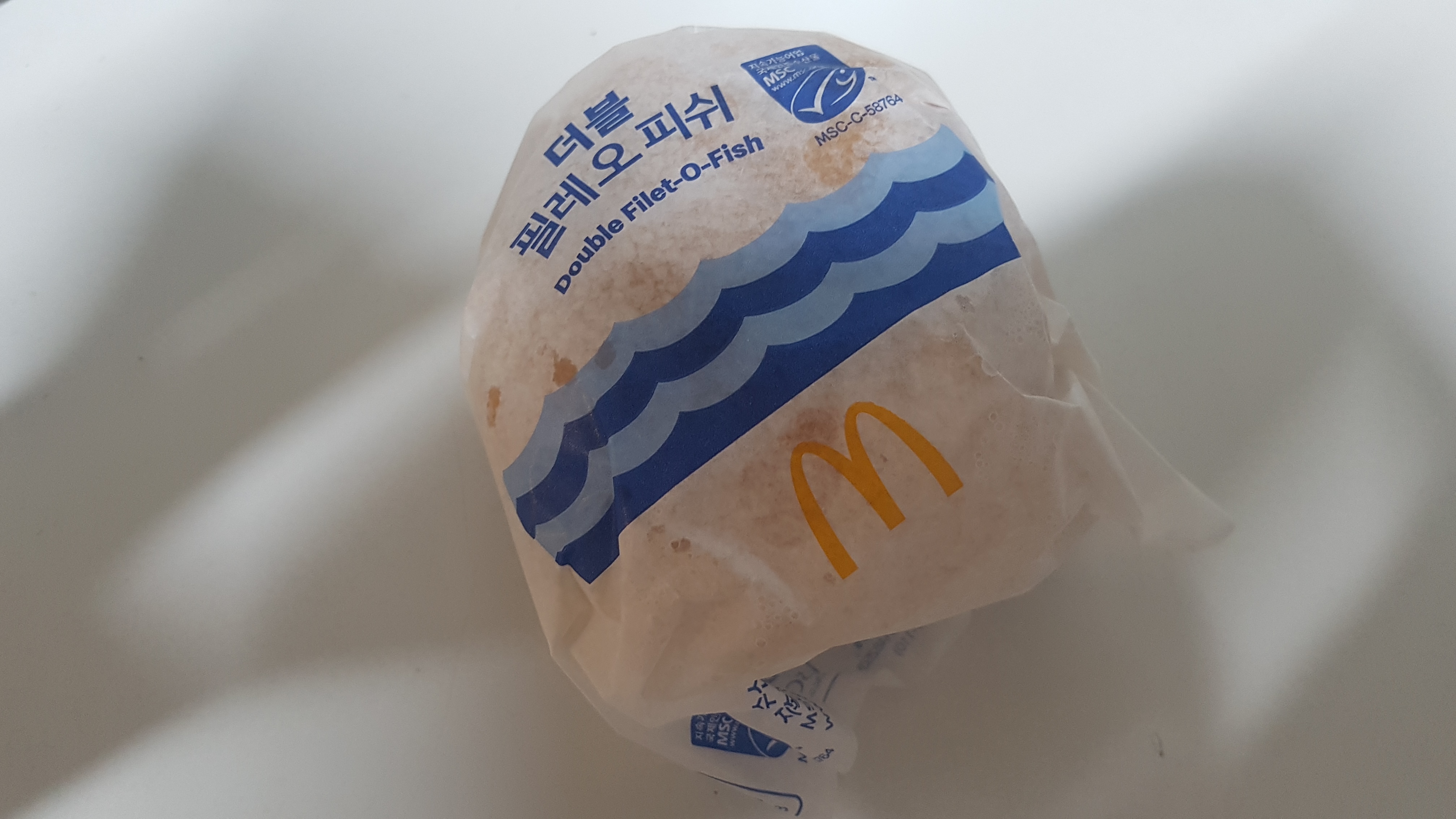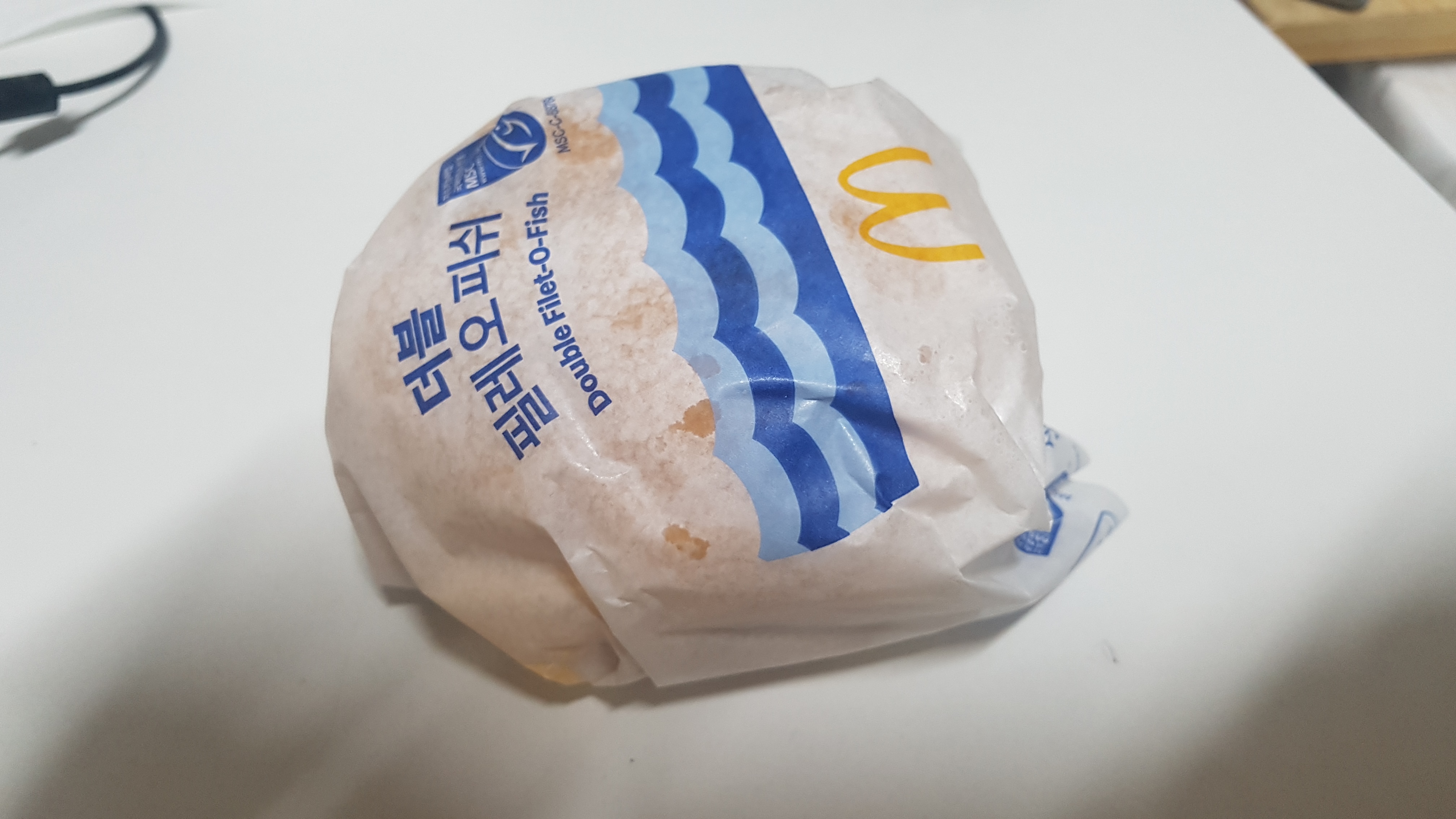 맥도날드 점심을 먹으러 갔다가. 저녁 메뉴도 고민하기 귀찮아서 새로 나온 "더블 필레오 피쉬"를 포장해왔습니다. 필레오 피쉬 메뉴는 튀긴 생선살을 페티로 넣은 맥도날드의 드문 해산물 요리에요.포장은 언제나 깔끔.