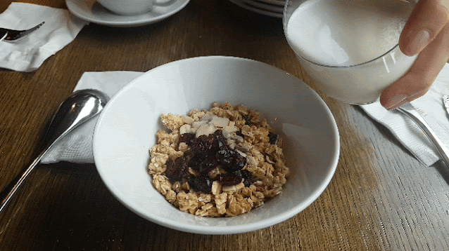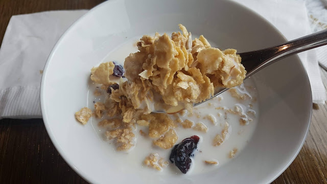 กินไปสักพักก็เกือบพลาดซีเรียล ... จริงๆแล้วไม่ได้กินซีเรียลเท่าไหร่ แต่เอามาใส่ชามเพื่อรีวิว ซีเรียลเป็นรสชาติที่หรูหรา เป็นเนื้อเดียวกันกับ "Special K" และรสชาติดีแม้ว่าจะเป็นกราโนล่าก็ตาม แทนที่จะมีเมนูน้อยลง แต่วัตถุดิบสำหรับแต่ละเมนูก็มีคุณภาพสูง