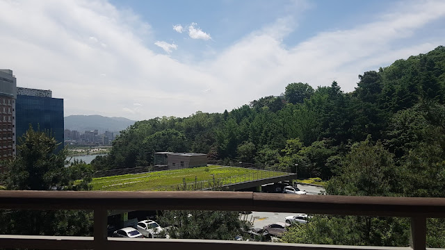 프론트는 이렇습니다. 직원분이 더 친절히 설명해주시지만, 익스트라 차지를 하면 사우나 이용이나, 조식 업그레이드 이용할 수 있다고 권유해주시긴 합니다. 그리고 건물은 총 삼층입니다. 전 객실 리버뷰이지만, 그랜드 워커힐 호텔이랑, 비스타 워커힐에 가려서 영... 라운지겸 조식당은 리버 뷰랍니다.