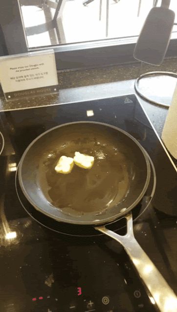 I melted butter and made scrambled eggs. It doesn't matter whether you fry it to your liking or serve the egg "jeon". I was having fun. There are two large inductions, so I did not need to stand in line.