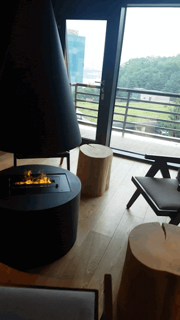 Nội thất trong phòng được làm bằng gỗ nguyên tấm. Cảm giác như được chữa lành. Nó giống như một trại ở giữa Seoul. Một chiếc giường và một chiếc bàn rộng rãi phía trước. Căn phòng rất rộng. Tôi nghĩ rằng giường có thể chứa đến 4 người lớn. Cá nhân, giường là rất tốt. Tôi nghĩ rằng nó không phải là một 5 sao cho không có gì.