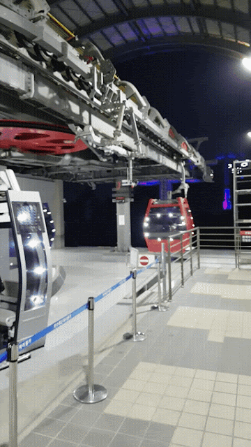 ประตูเปิดโดยอัตโนมัติ เป็นเคเบิลคาร์ที่สามารถรองรับได้ถึง 4 คน แต่สำหรับครอบครัว คู่รัก และเพื่อนเท่านั้น ไม่ได้ขี่กับคนอื่นก็ดีนะ