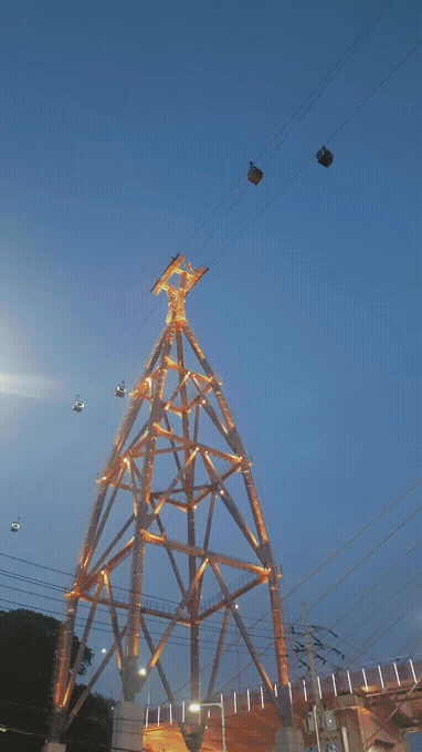 It makes you feel like you are in the Star Wars space city. The distance between the cable car and the floor is quite high. The height of the spire was quite high. Personally, I find it very dizzy.