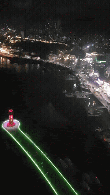 丽水夜海和夜景。 其中的主角,“哈默灯塔”。 而丽水“站街”水边的灯光也很美。 我还想再去丽水。