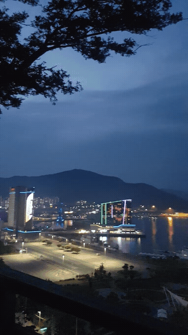 I didn't know that the night view of Yeosu night sea was so beautiful until I came up here. The sea view of Yeosu Expo and "Odongdo" was very beautiful. I looked at it for a long time.