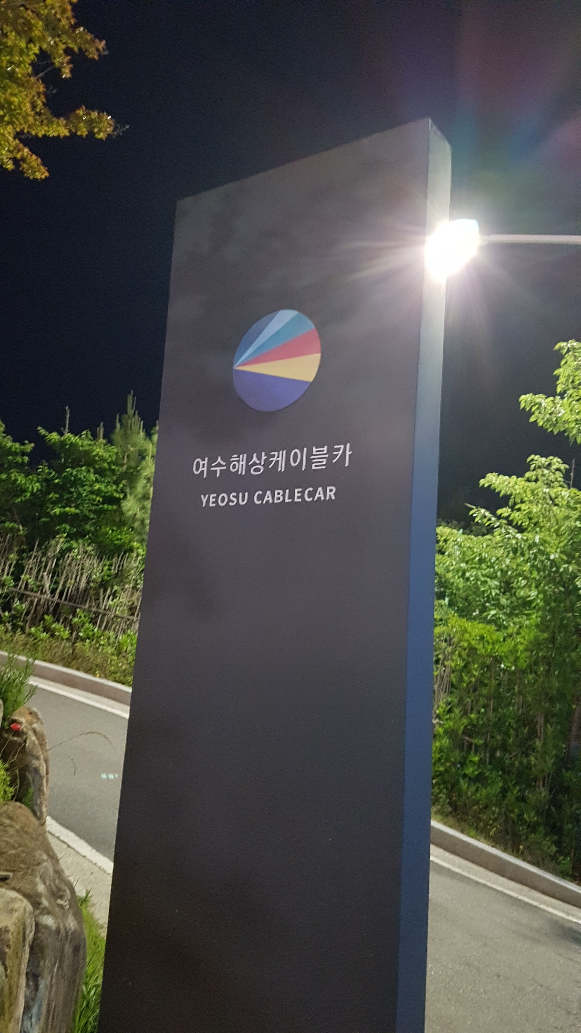 Đây là cách đi cáp treo ở Yeosu. Một ngọn tháp cao có thể được nhìn thấy từ "Stand Street". Màu sắc thay đổi của chóp rất bắt mắt. Khi nhìn lên ngọn tháp từ dưới lên, nó trông không cao. Tuy nhiên, khi tôi thực sự lên cáp treo, nó rất cao.