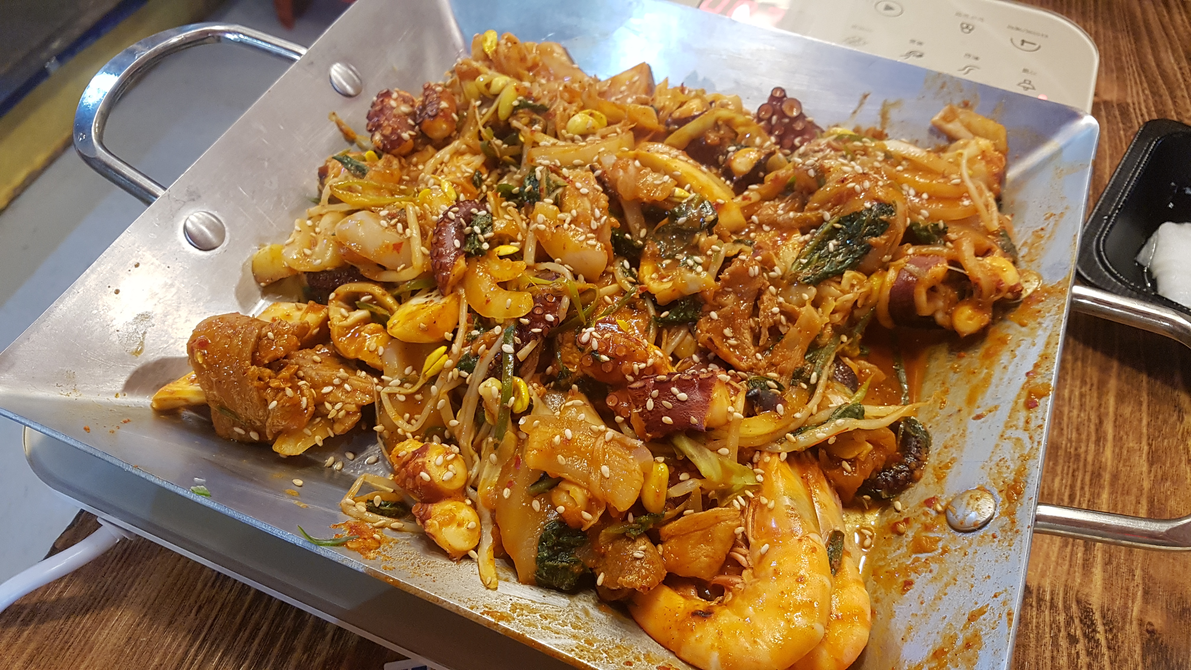 먹음직 스럽죠? 각종 해물이 한데 모여서 맛있고요. 곱창이랑 당면 사리 넣고 싶은 맘이 굴뚝 같네요. ㅋㅋㅋㅋ볶음밥도 추가해서 먹었어요. 맛은 그냥 고추장 베이스에 돼지고기, 해물 볶음 맛이에요.