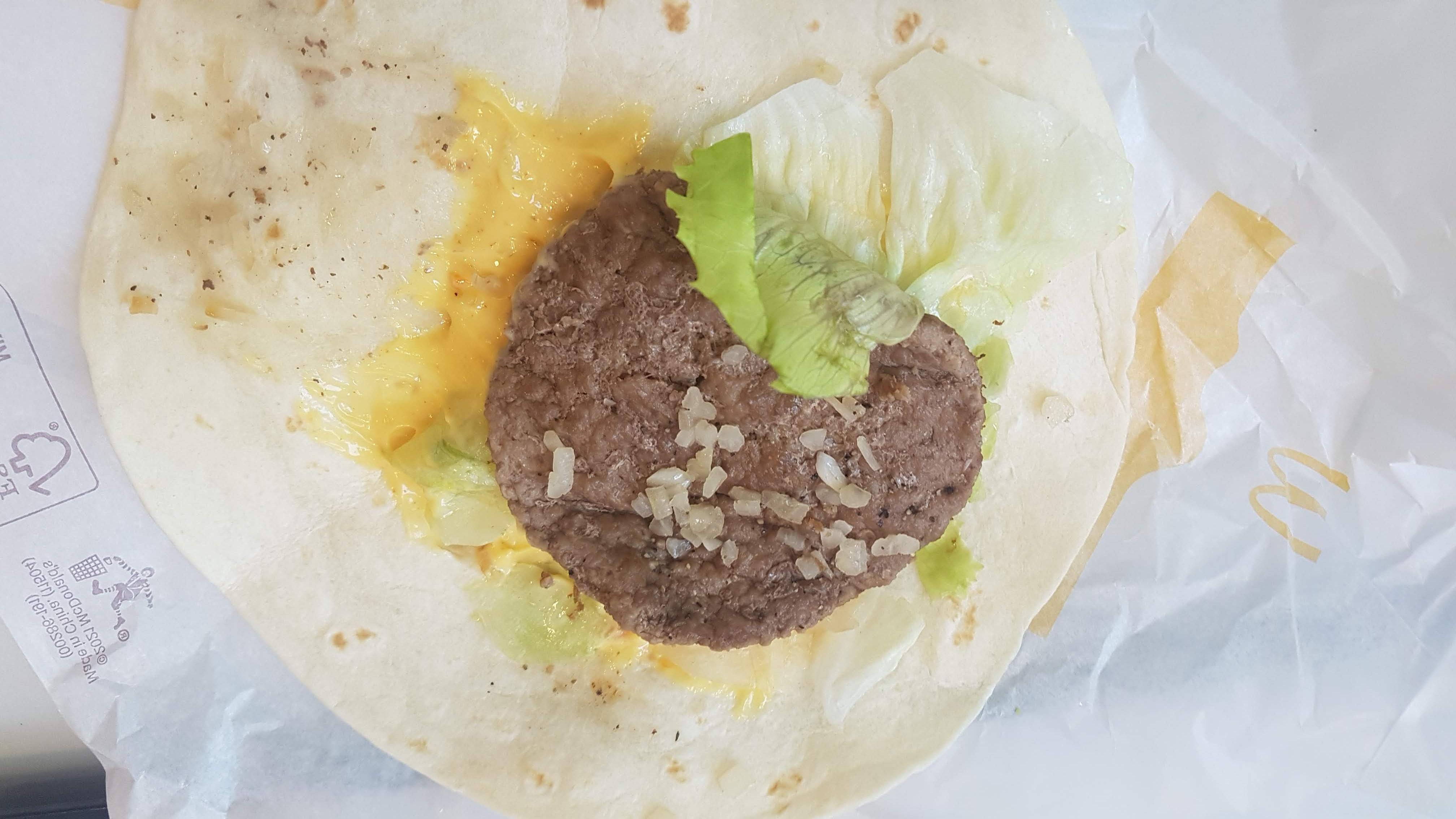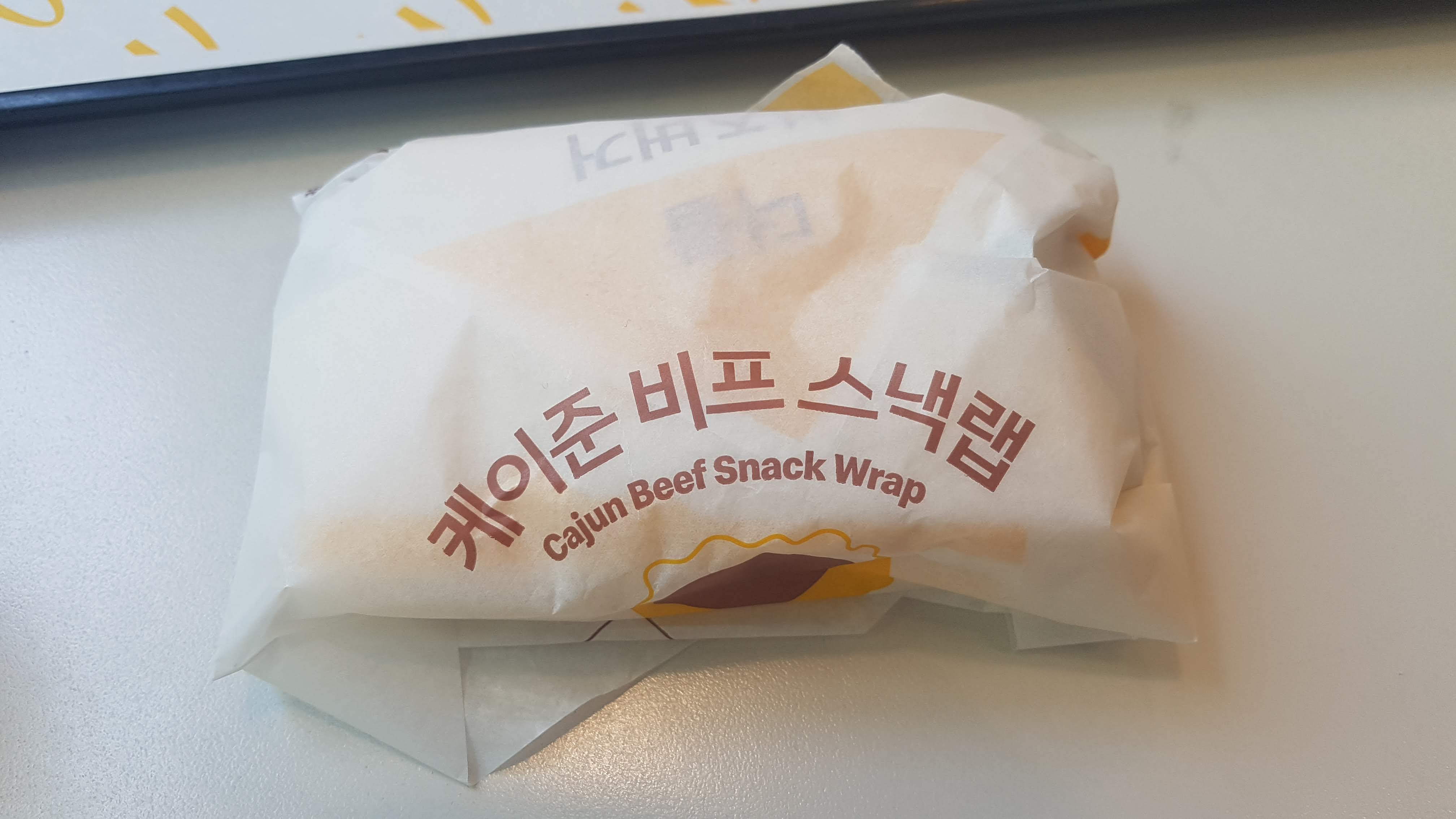 케이준 비프 스낵랩. 이거는 햄버거 패티 1장을 스낵랩에 끼운 급조한 메뉴같아요. 근데 맛있어요.