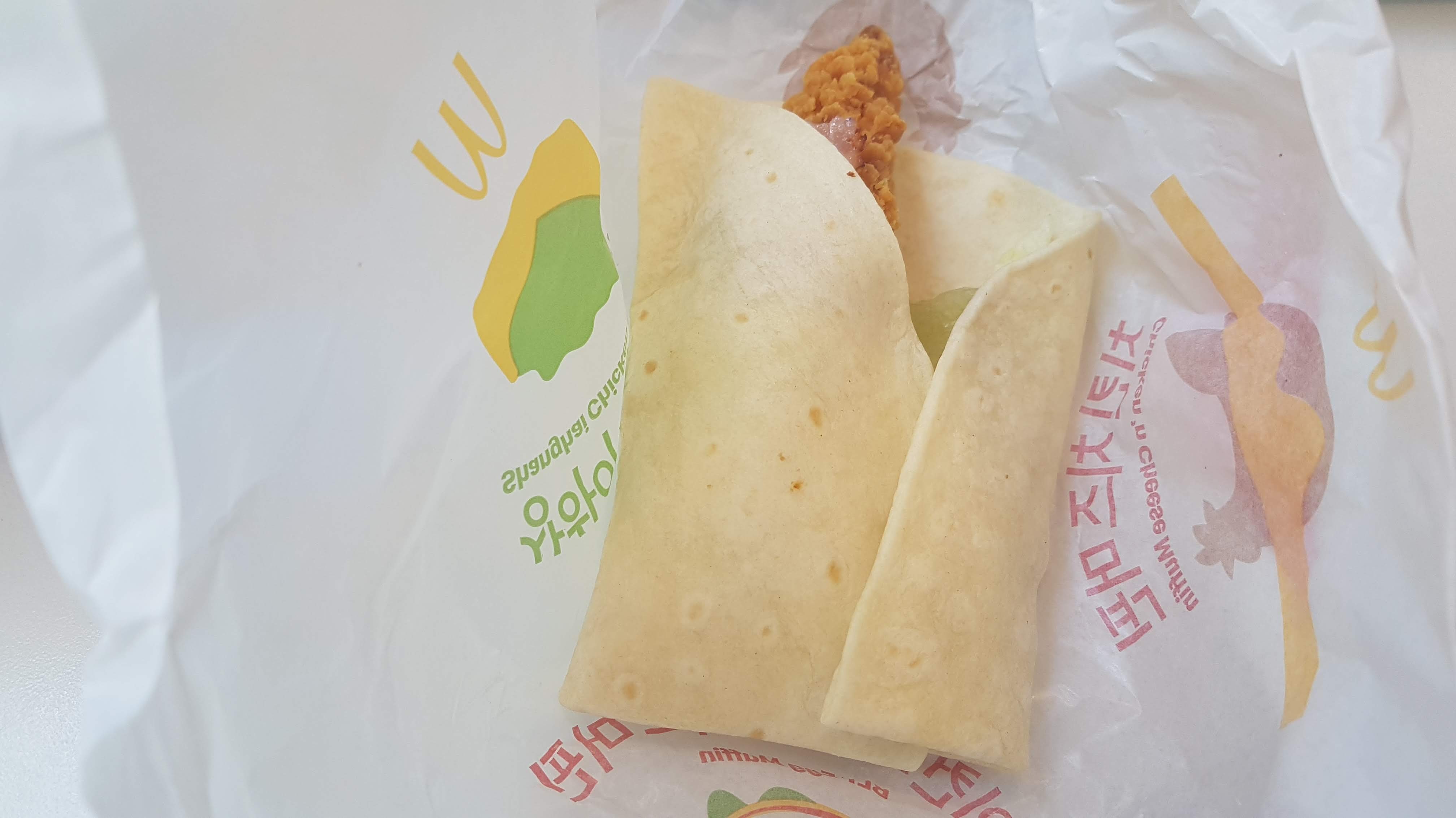 짜잔. 벗겨보았어요. 햄버거 패티가 살짝 보이시나요. 저는 맥도날드에서 버거보다 스낵랩이 더 맛있을까요. ㅋㅋㅋㅋㅋ 모를 일이에요. 가격은 2200원이에요. 사알짝 비싼 감이.. 이벤트할 때 질리게 먹는게 좋을 것 같아요.