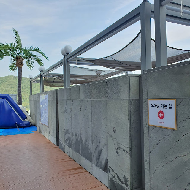 여기는 두번째 6층에 있는 "라테르니 파크 풀"입니다. 여기는 유아랑 함께 수영하기 좋은 풀입니다. (수영모는 꼭 착용해야하는 것 아시지요?) 이유는 아래에;